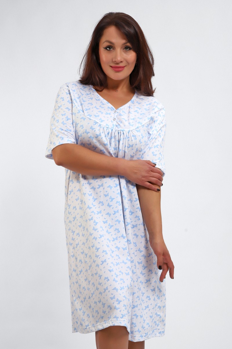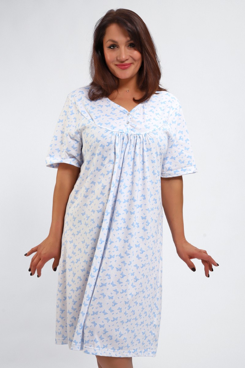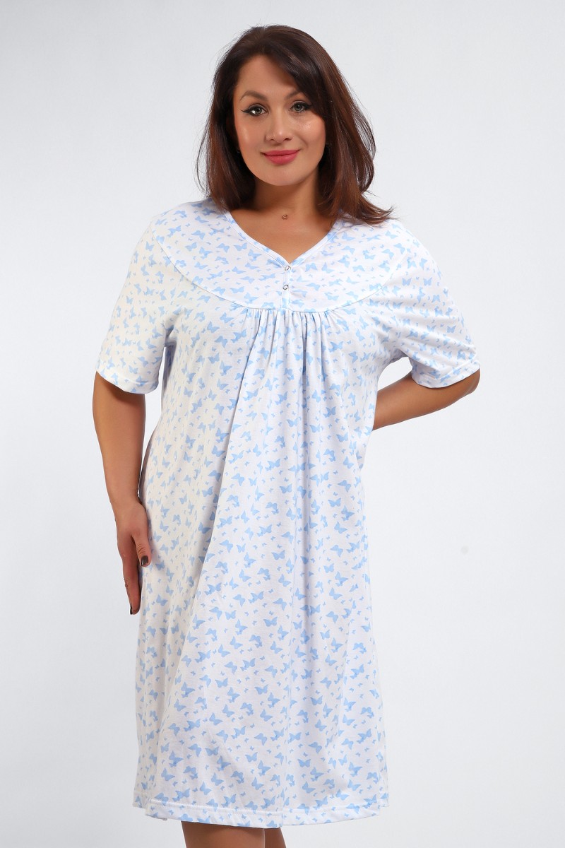 Сорочка женская №88126 кулирка (р-ры: 56-68) бабочки на белом