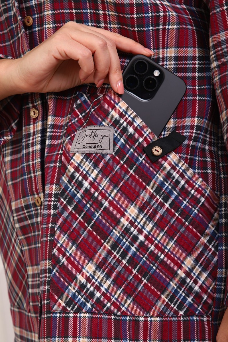 Представляем Вашему вниманию женскую теплую рубашку с очень удобными карманами-кенгуру и специальным акцентным чёрным карманом для смартфона (пластиковых карт, ручек, очков и т.п.), один из карманов-кенгуру можно застегивать петелькой на пуговицу. Рукава с манжетом, который подгибается - благодаря этому длина рукава регулируется в пределах 5 см (можно сделать чуть короче, чуть длиннее). Крой рубашки очень комфортный, изделие не сковывает движений. Прямой силуэт стройнит. Ткань - фуле (относительно плотный материал, с небольшим начёсом с изнанки), 100% хлопок. Фуле легко утюжится, относительно не сильно мнётся, ткань устойчива к износу. Замечательный выбор для отдыха и работы.