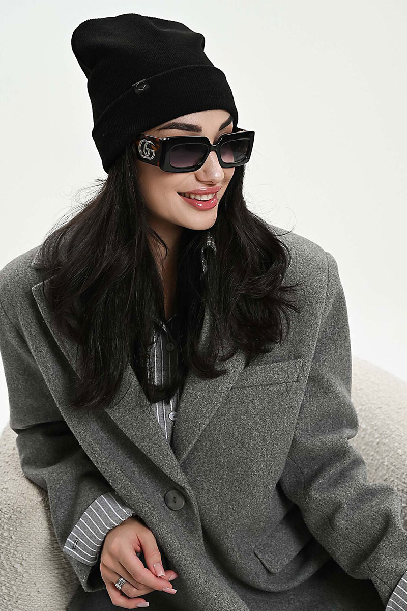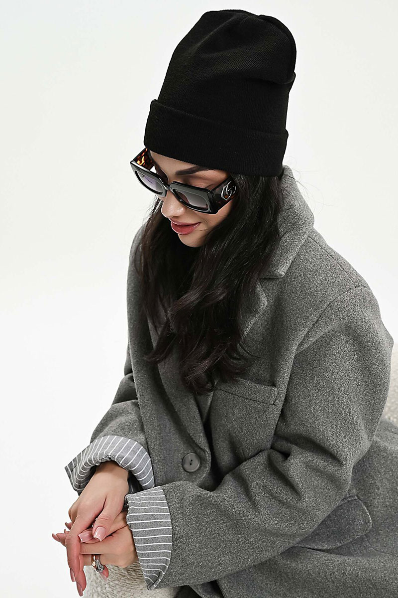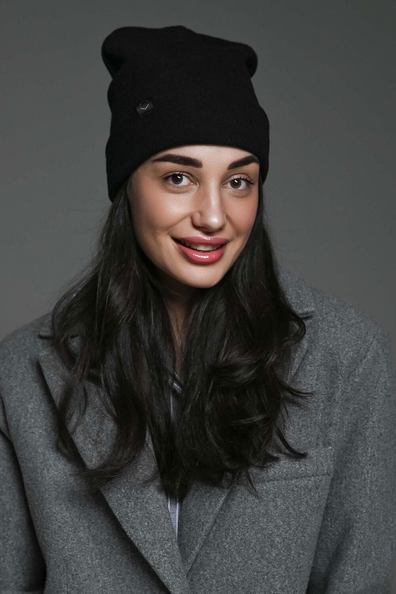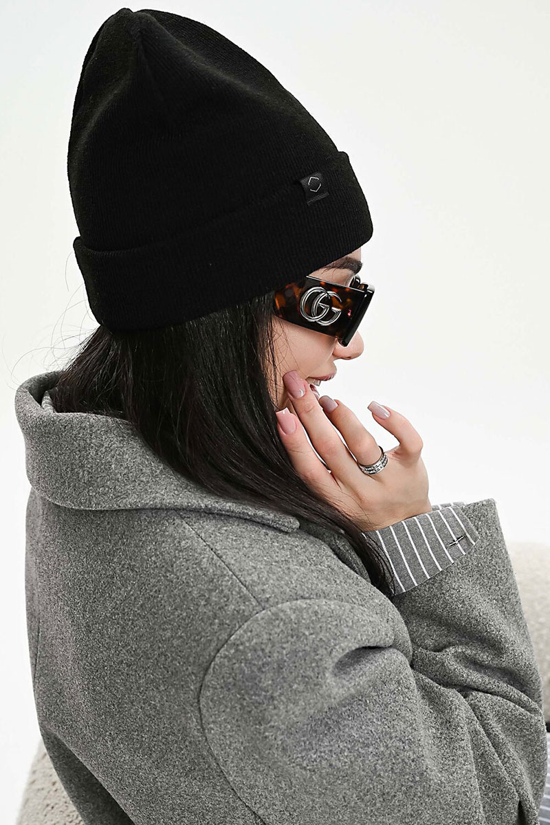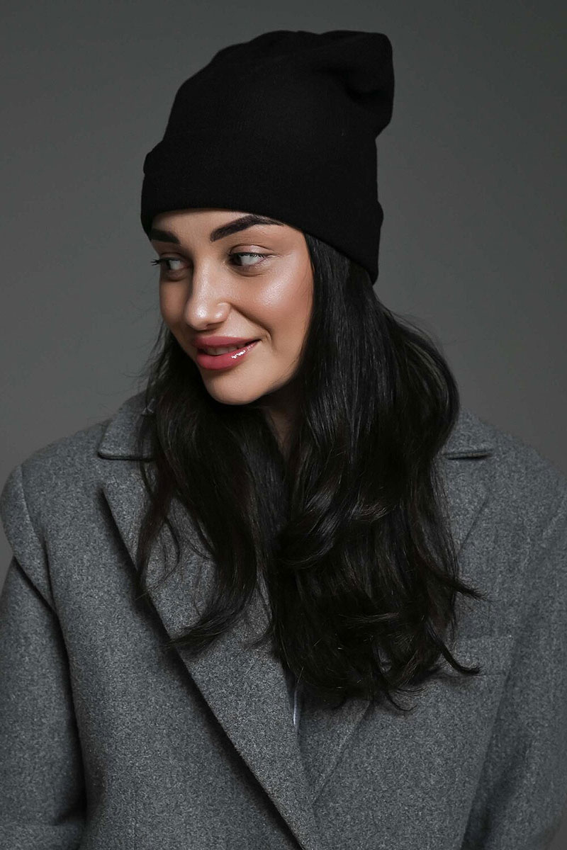 Шапка женская теплая в рубчик вязаный трикотаж 057175 черный