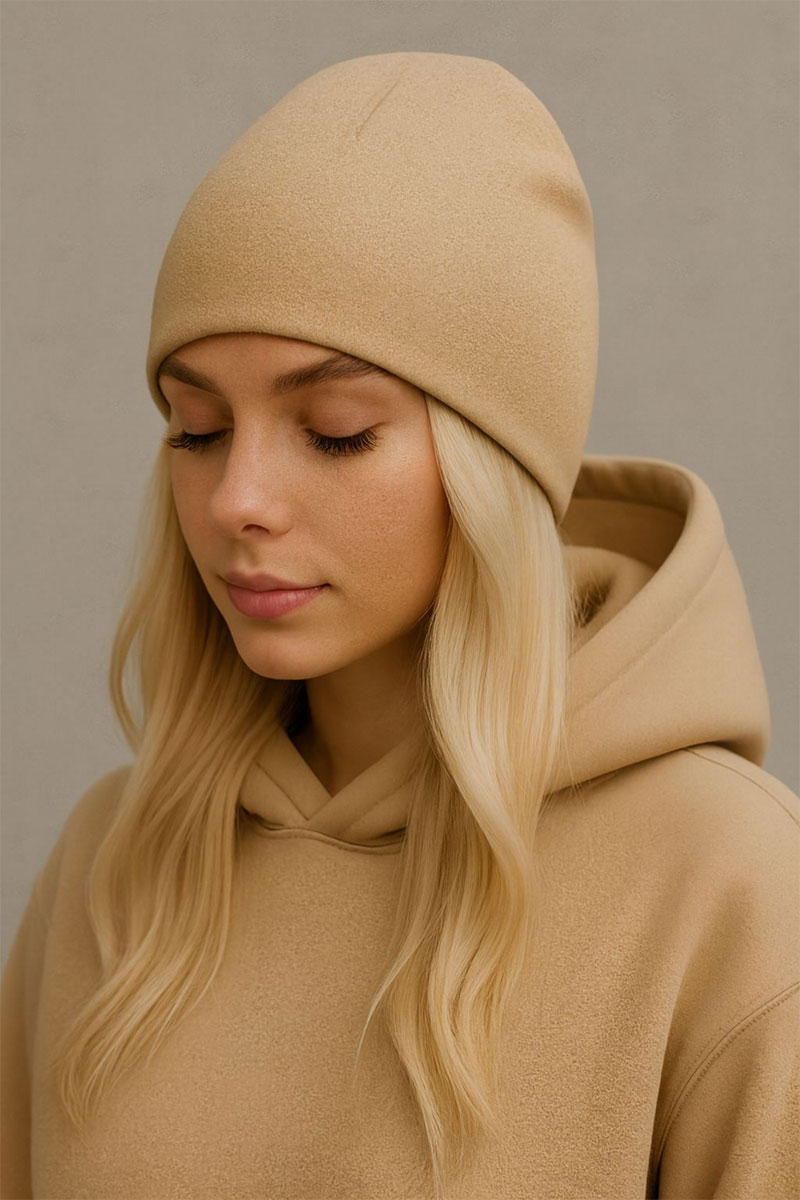 Шапка женская футер 3-х нитка с начесом №001 бежевый