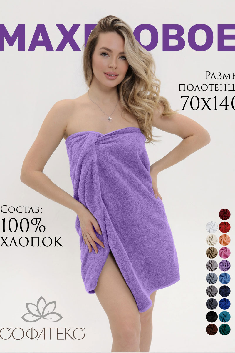 Полотенце махровое банное "Софатекс" 056320 сирень
