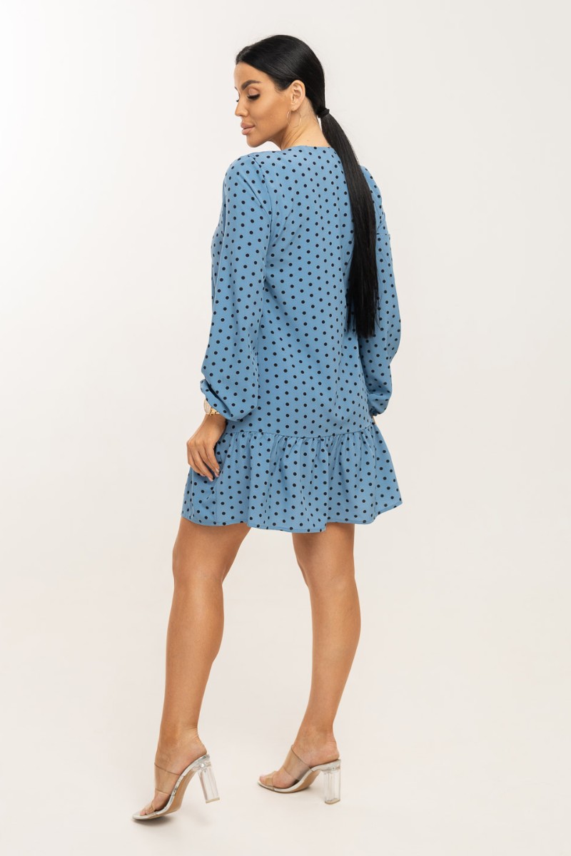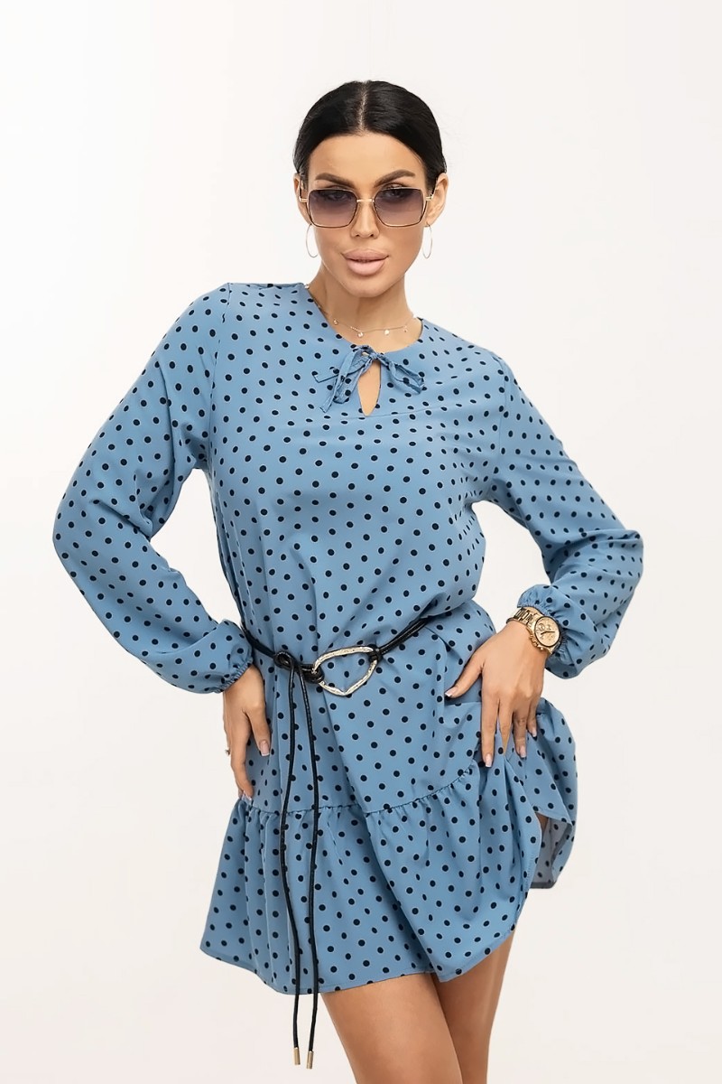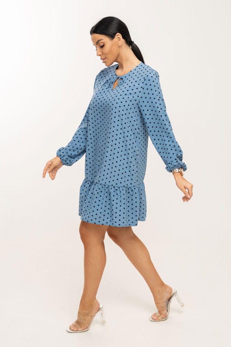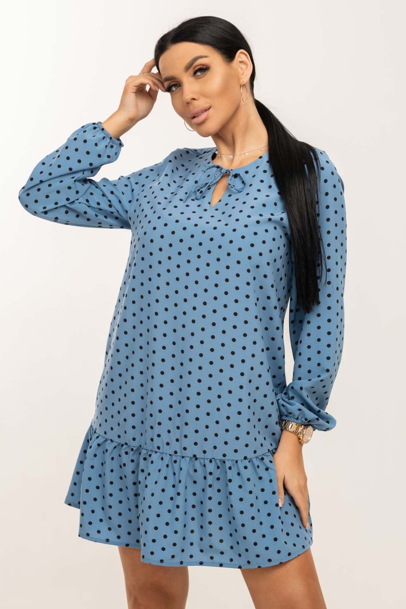 Представляем Вашему вниманию женское платье из легкой ткани, свободного силуэта с воланом по низу изделия, длинным рукавом, округлой горловиной с завязками. Наше платье отлично будет смотреться как с кедами и сумкой кросс-боди, так и с туфлями на каблуке и широким ремнем.