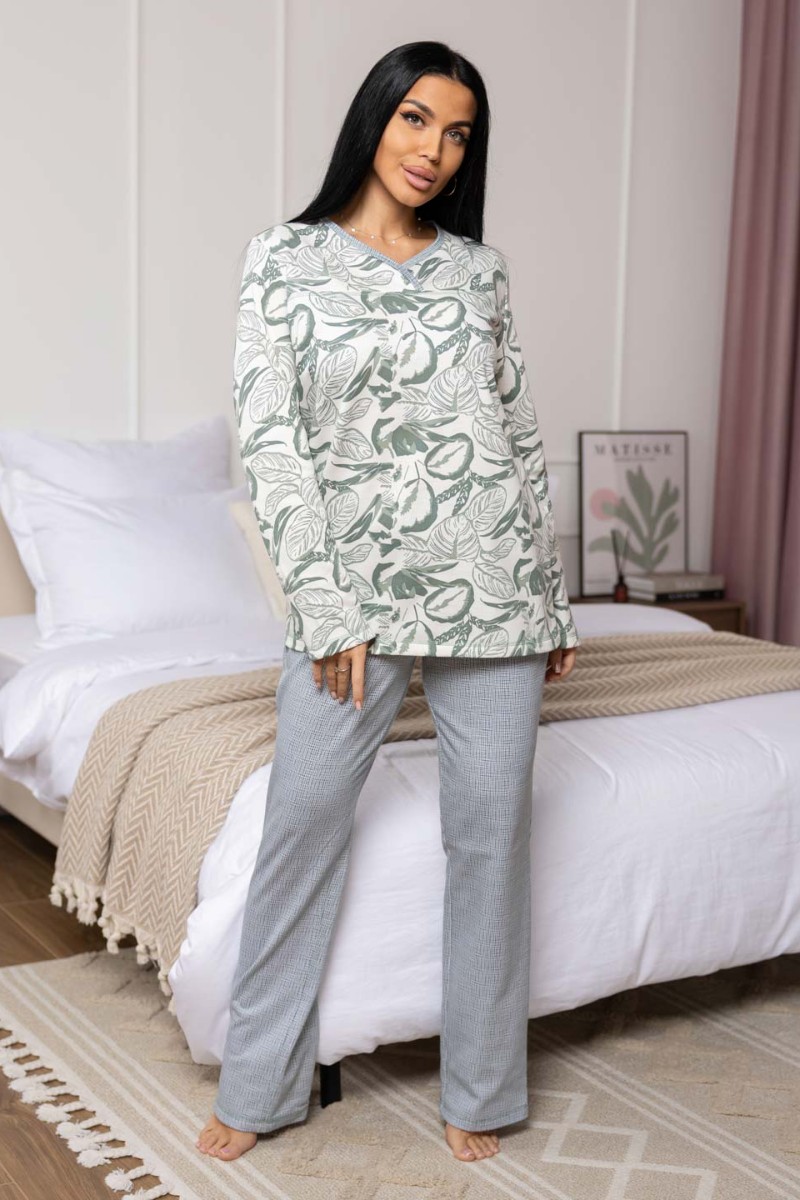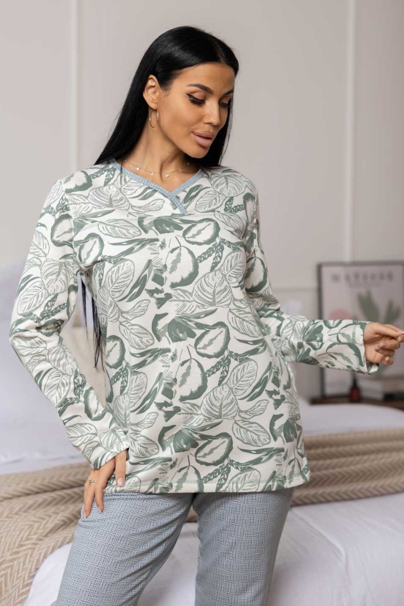 Пижама женская 1759/11 футер с начесом (р-ры: 48-62) хаки