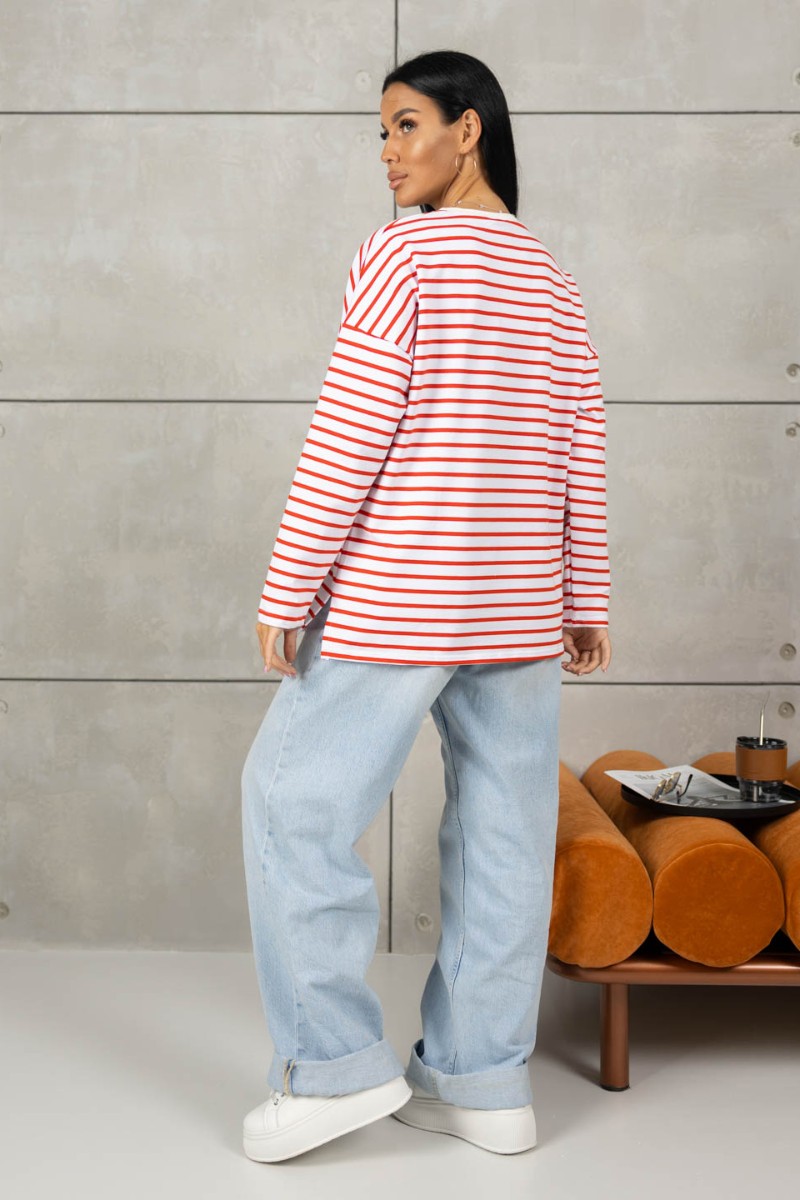 Лонгслив женский 1688/2 футер 2-х нитка пенье (р-ры: 42-52) белый-красный