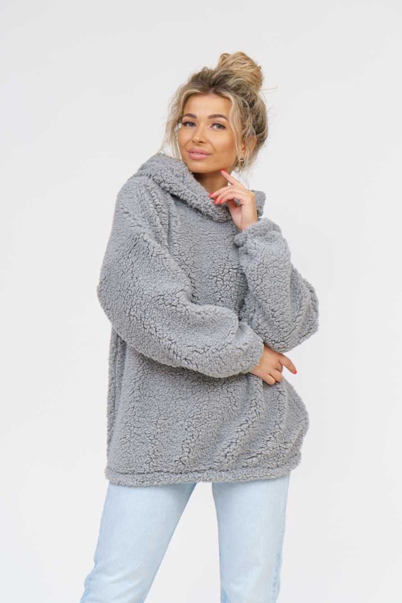 Представляем Вашему вниманию толстовку оверсайз, которая станет прекрасным подарком на любой праздник! Шерпа – синтетическое полотно с имитацией меха на лицевой поверхности. На ощупь материал плотный, приятный, мягкий. Хорошо согревает. Изнаночная сторона – текстильное полотно трикотажного переплетения. Фактура ткани хорошо видна на фото. Идеально подойдет для прохладного времени года. Толстовка идеально сочетается с любыми вещами в гардеробе с джинсами, юбкой, можно надеть поверх платья холодным вечером. Она непременно понравится взрослым женщинам и девочкам - подросткам.