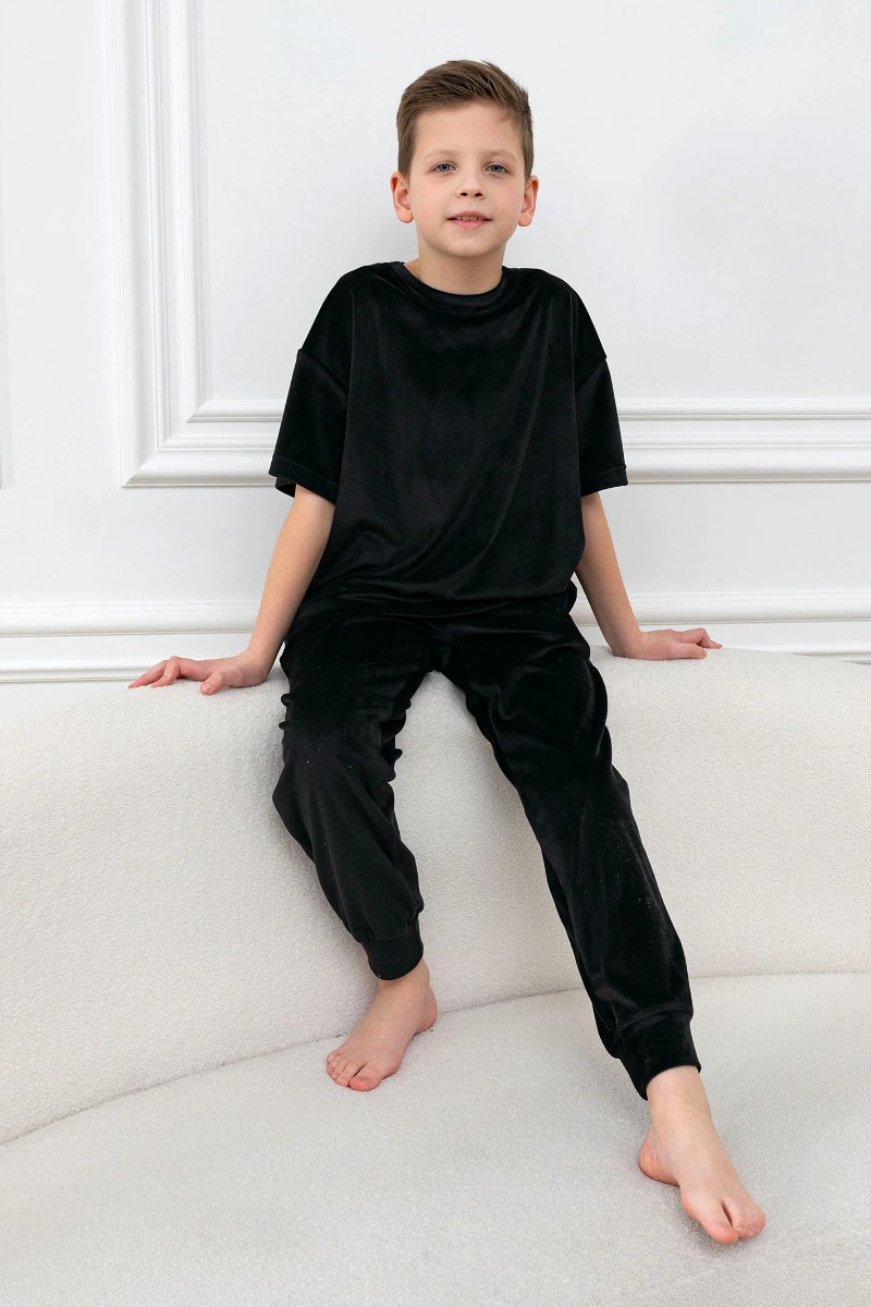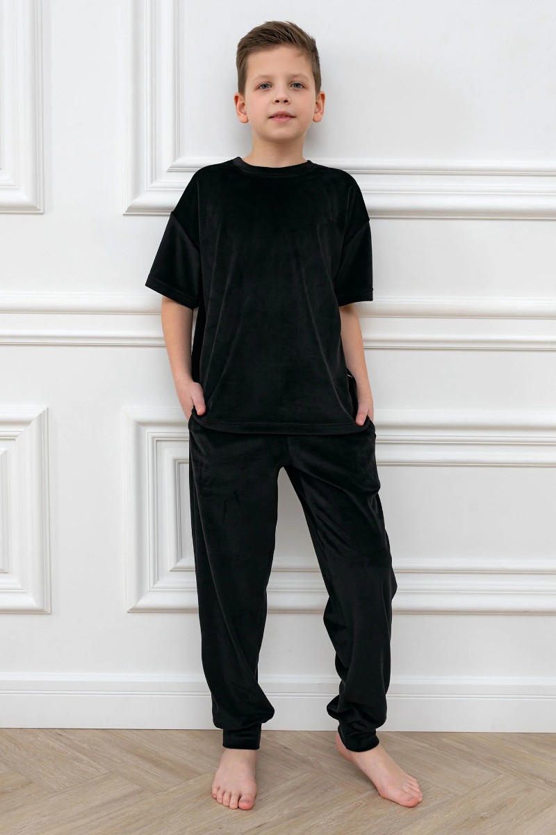 Костюм двойка детский М-03КД "Котик" велюр (р-ры: 30-42) черный