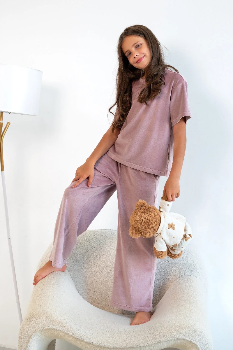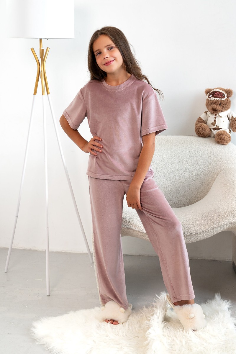 Костюм двойка детский М-04КД "Кэтти-1" велюр (р-ры: 34-40) нежно-розовый