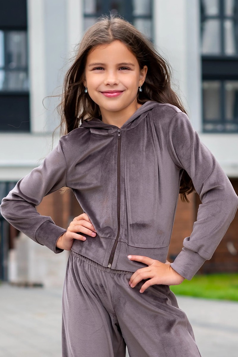 Представляем Вашему вниманию однотонный детский костюм для девочек: свободные брюки и спортивная толстовка с капюшоном. Костюм детский без принта идеален для спорта. Резинка на брюках палаццо обеспечит удобную посадку.