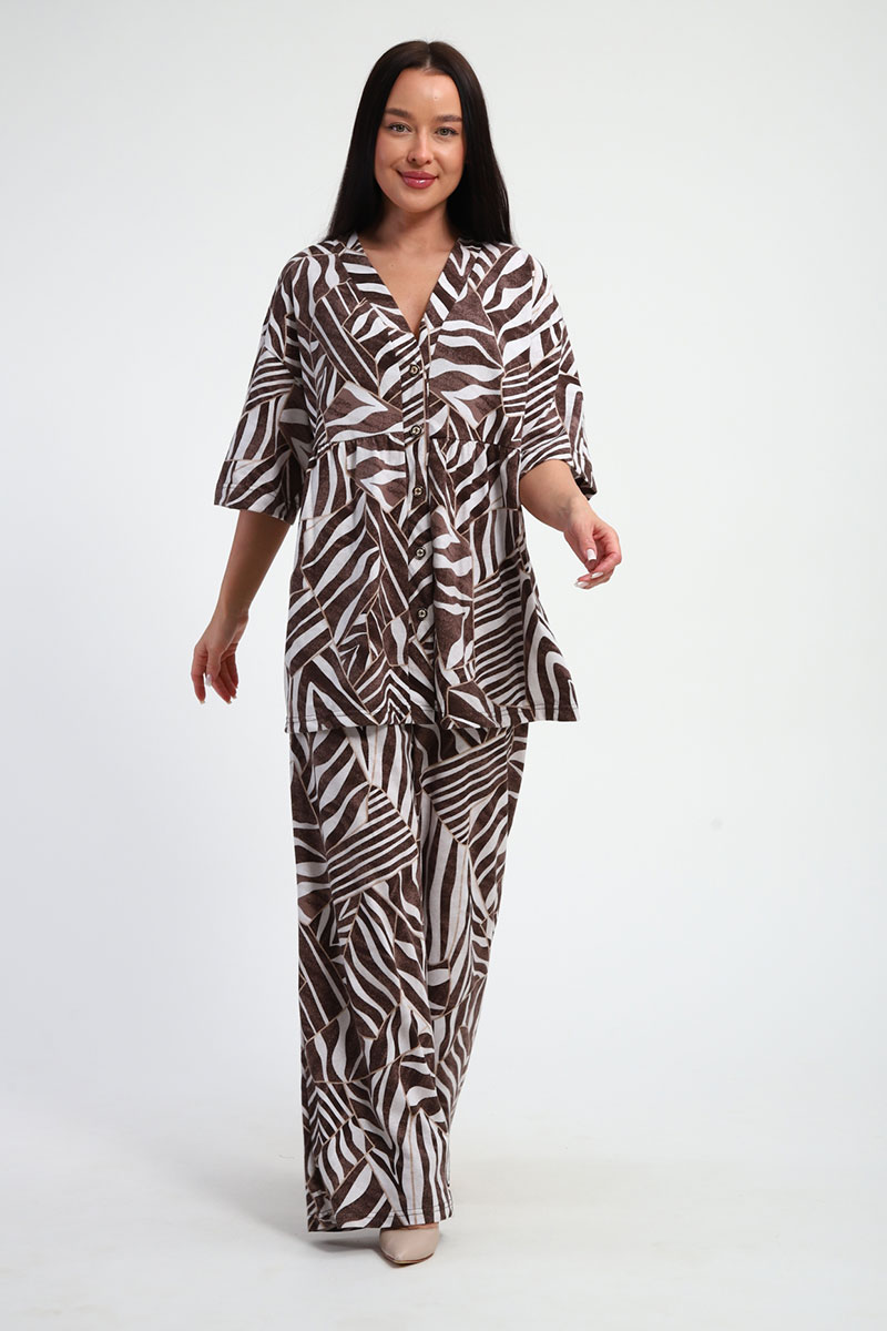 Представляем Вашему вниманию замечательный женский костюм, изготовленный из качественного материала. В этом костюме Вы всегда будете чувствовать себя уютно, удобно и комфортно, так как ткань очень легкая, нежная и приятная к телу. Костюм эффектно смотрится. Наряд хорошо сидит на фигуре любого типа и не стесняет движений, даря Вам уверенность в себе.