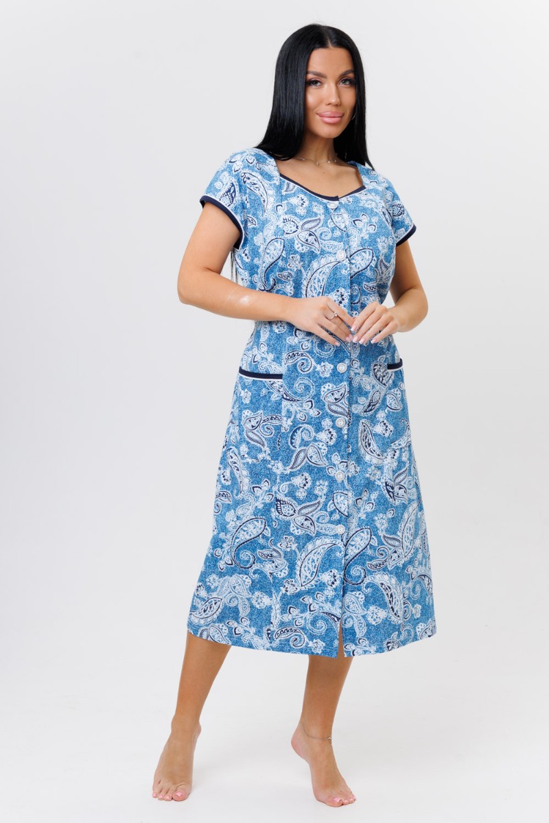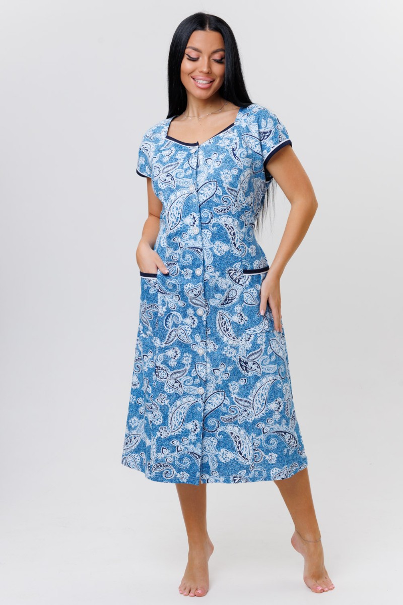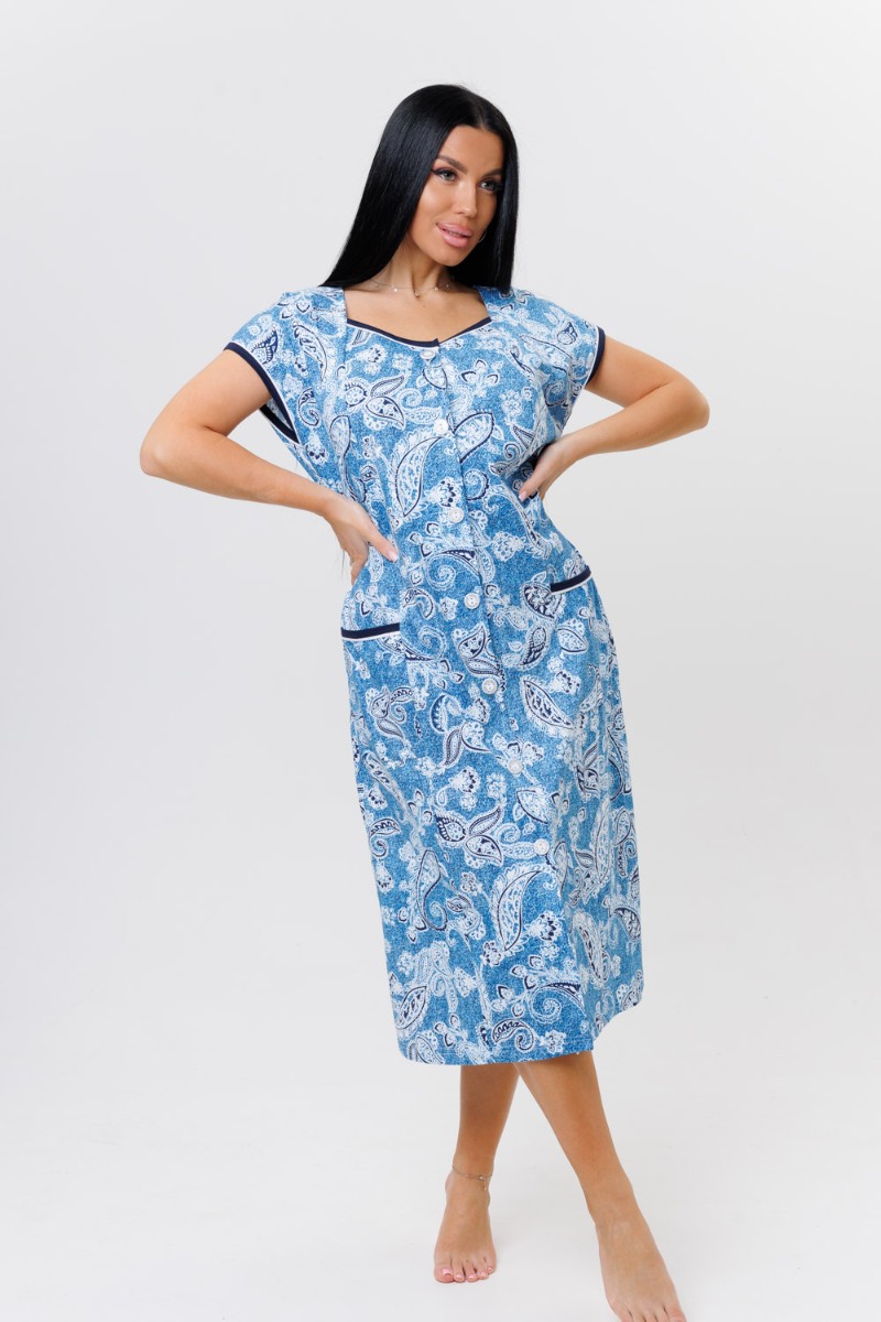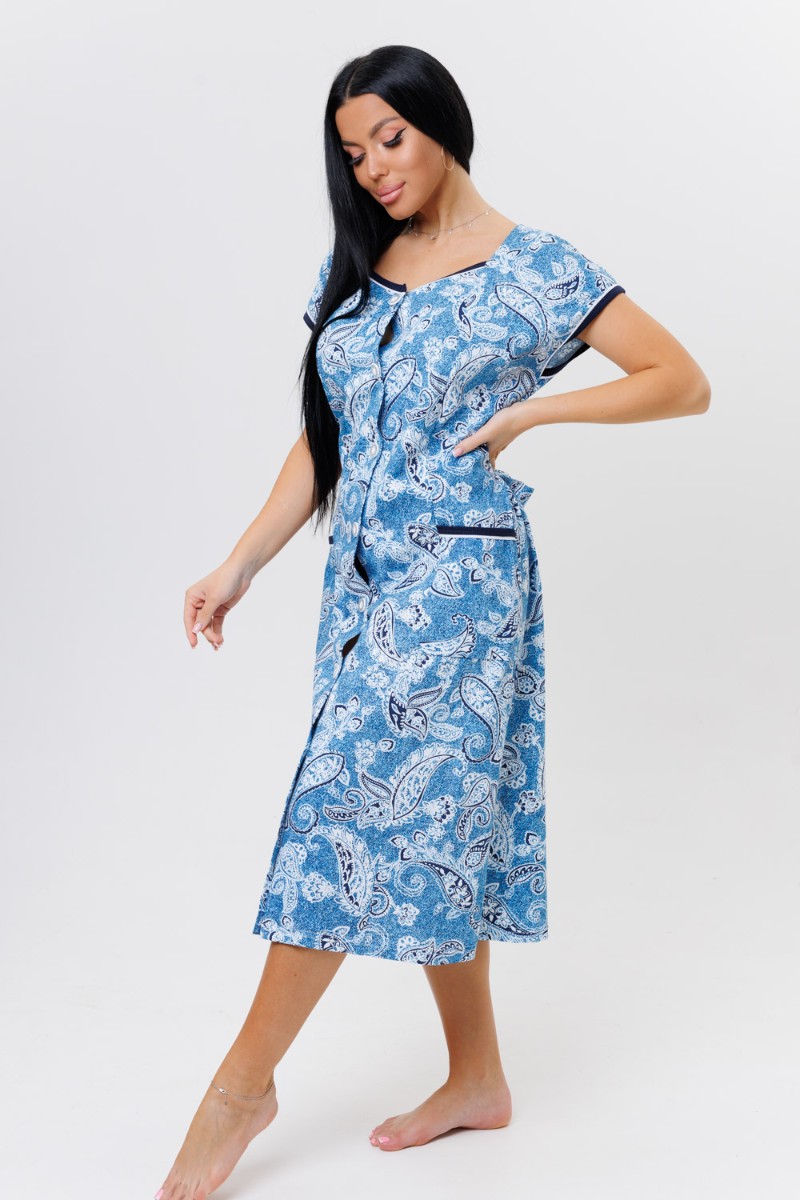 Халат женский №2139 кулирка (последний размер) голубой 50