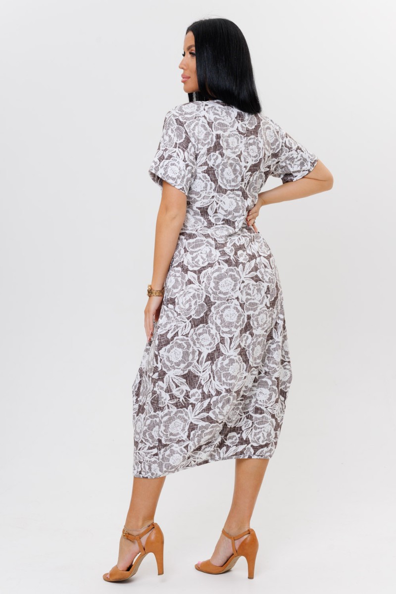 Представляем Вашему вниманию шикарное, модное платье свободного силуэта в стиле «Бохо». Красивое и нарядное, с коротким рукавом, украшенное цветочным принтом. Платья такого фасона смотрятся очень женственно. Обилие аксессуаров тут обязательное дополнение. Идеально подходят полным девушкам, т.к. они позволяют выгодно подчеркнуть достоинства и скрыть недостатки фигуры. Талия, часто, акцентируется различными ремнями или шнурками. Бохо всегда объемные и широкие, при этом, они «не утяжеляют» образ , выглядят модно и оригинально.