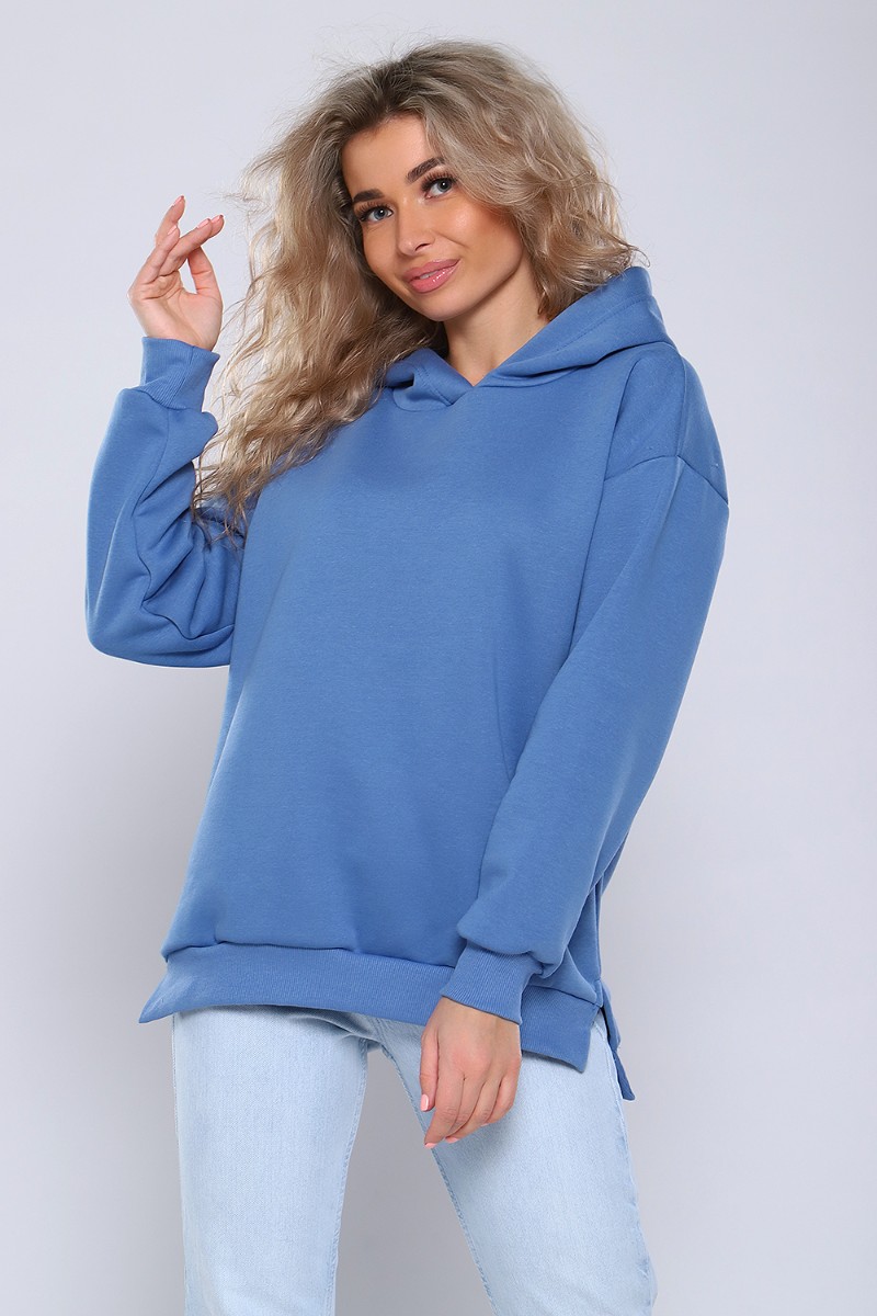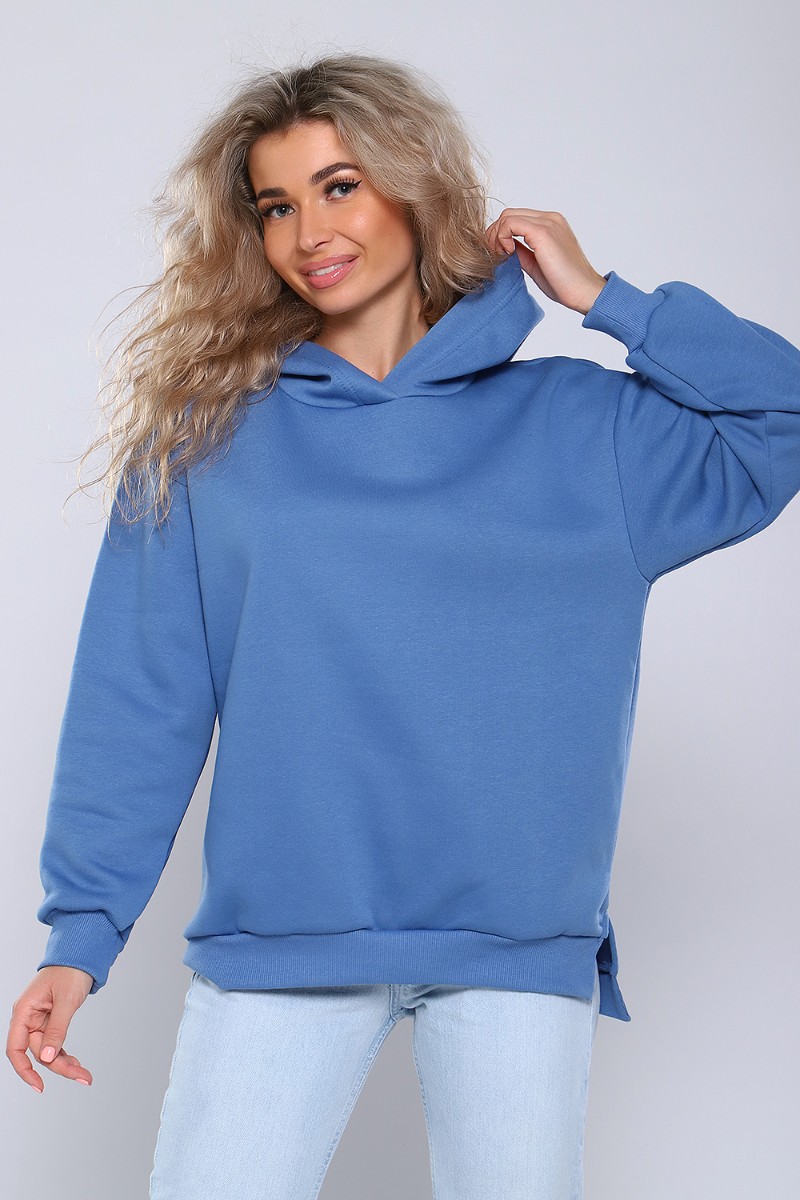 Толстовка женская №89333 футер 3-х нитка с начесом (последний размер) синий 54