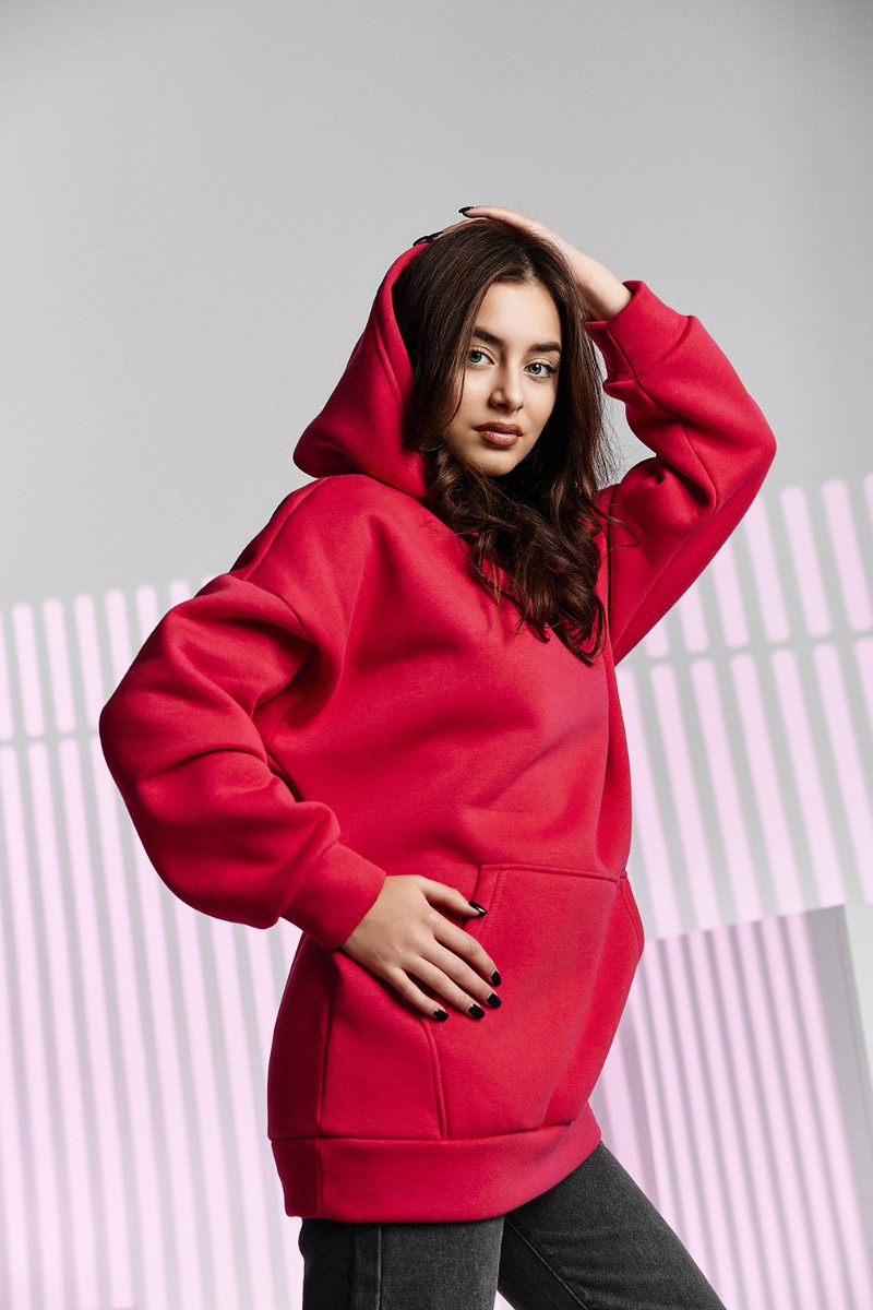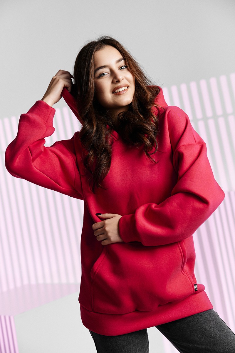 Представляем Вашему вниманию уютное худи свободного кроя с объемным капюшоном, спущенным плечом и удобным карманом-кенгуру. Оверсайз крой не сковывает движений, изделие хорошо держит форму. Толстовка из трикотажного футера с мягким начесом очень теплая и приятная к телу. Худи одинаково стильно будет смотреться на разных типах фигуры. Красивые насыщенные цвета и минималистичный дизайн сделают эту базовую вещь самой любимой в Вашем гардеробе. Худи эффектно смотрится с любыми джинсами: укороченными и широкими, клеш и бойфредами.