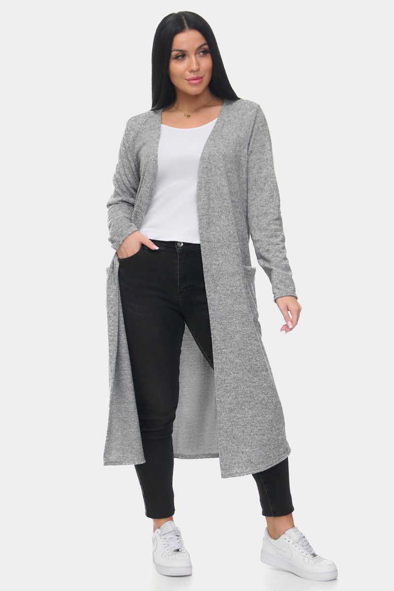 Представляем Вашему вниманию стильный и уютный длинный кардиган из мягкой ангоры софт. Модель прямого кроя с удобными накладными карманами и открытой линией переда. Приятный на ощупь материал обеспечивает комфорт и тепло, идеально подходит для повседневных образов. Отлично сочетается с джинсами и брюками.