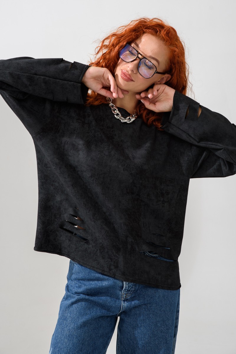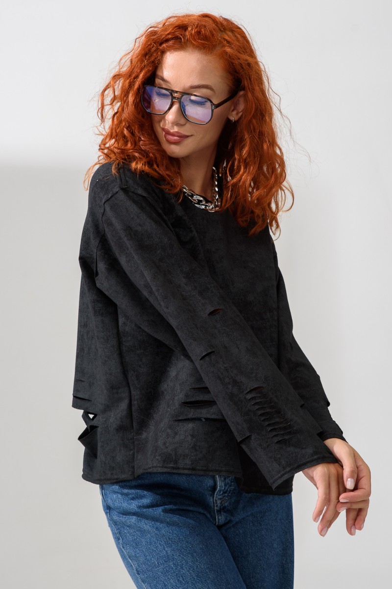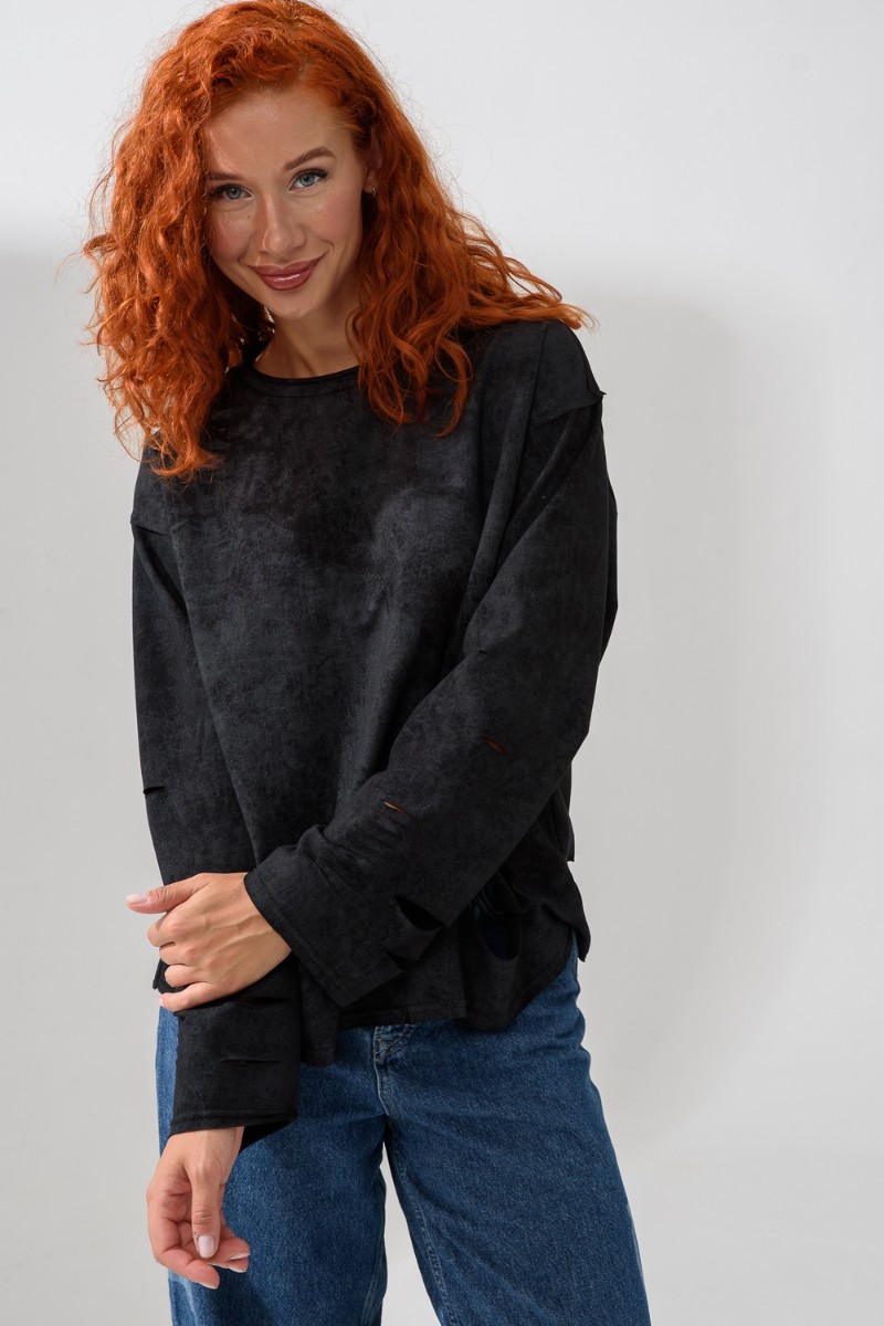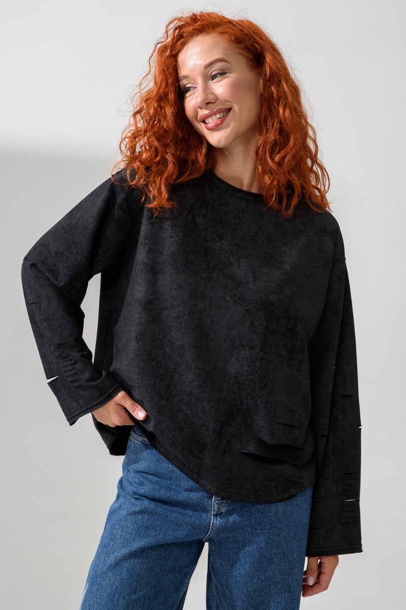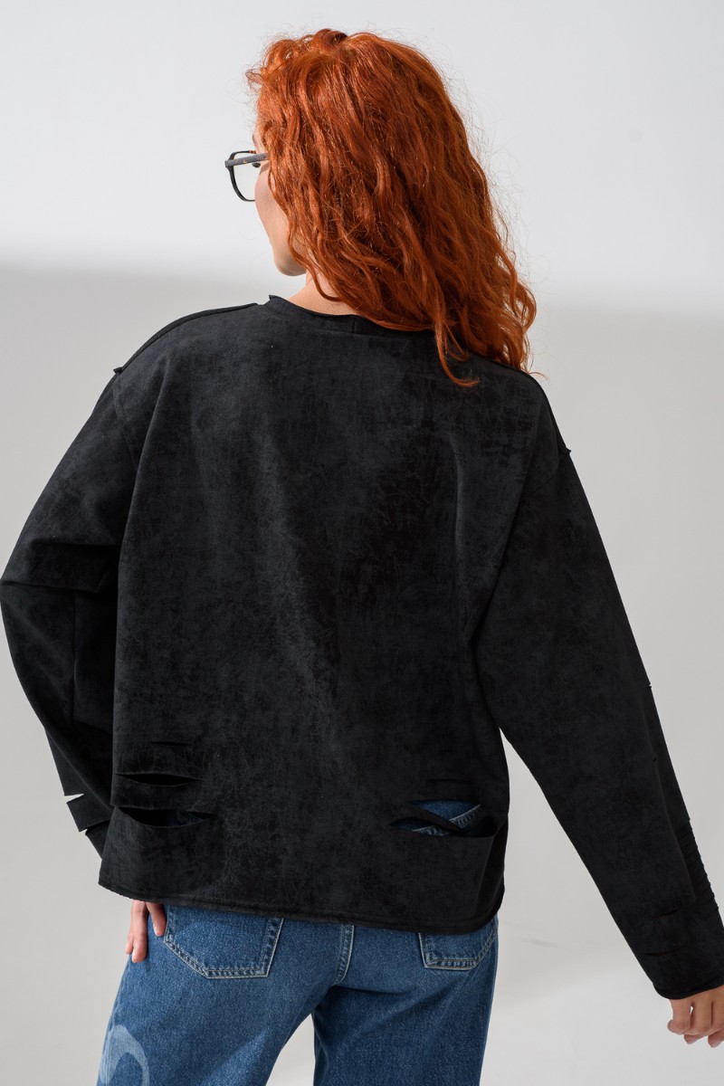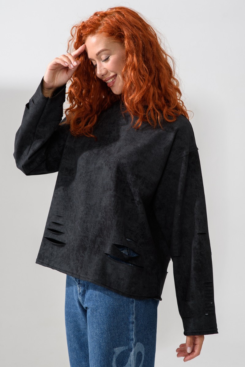 Толстовка женская №67172 футер с лайкрой 2-х нитка (последний размер) винтаж черный 42,44,50