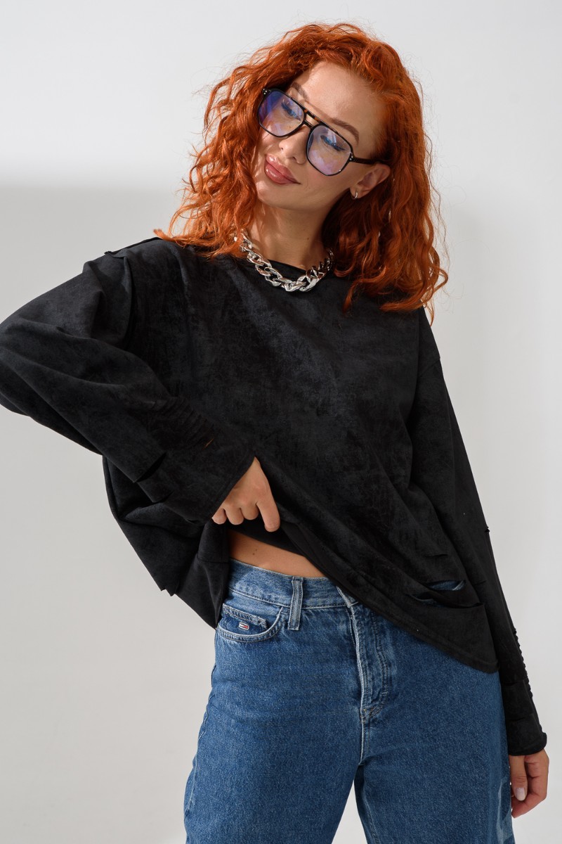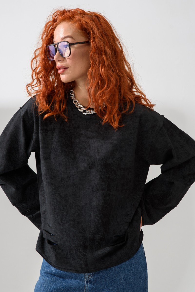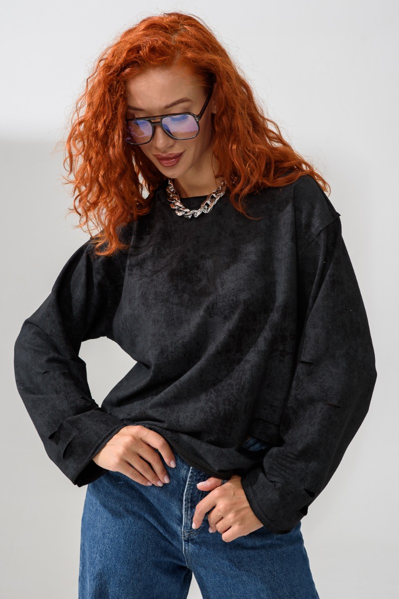 Представляем Вашему вниманию женский свитшот, который станет отличным дополнением к вашему гардеробу благодаря своему унисекс дизайну. Теперь каждый может насладиться комфортом и стилем этой вещи без ограничений. Длинная толстовка имеет необработанный край, что добавляет ей небрежности и непринужденности. Безупречная посадка и оверсайз форма делают данную толстовку подходящей для размеров с 42 по 52. Также это позволяет использовать ее как в повседневном образе, так и в спортивном стиле.