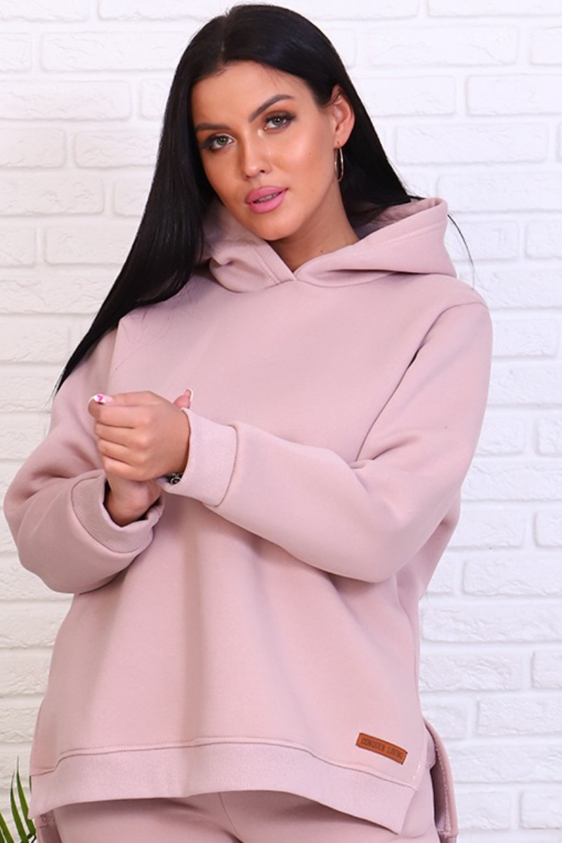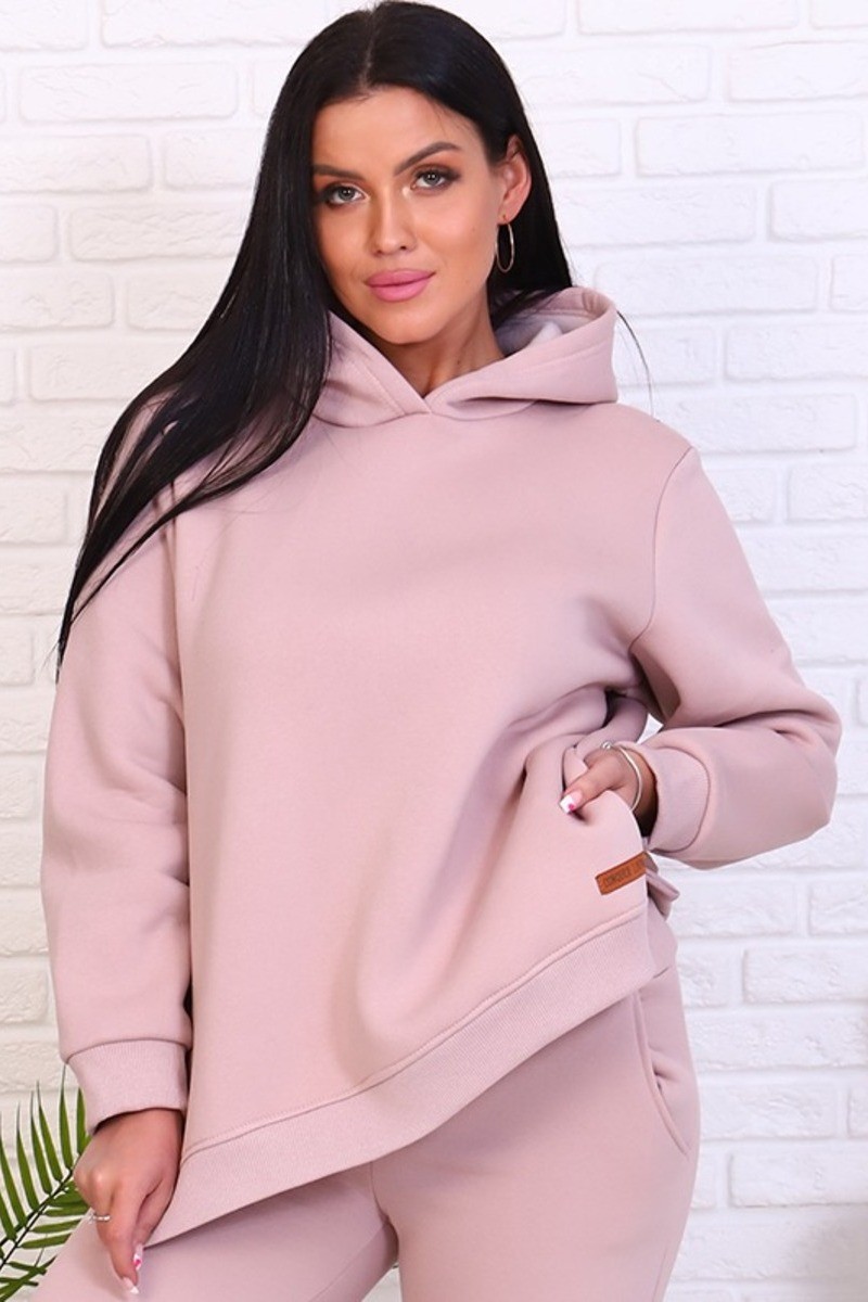Толстовка женская №4485 футер 3-х нитка с начесом (последний размер) пудра 50,52,54