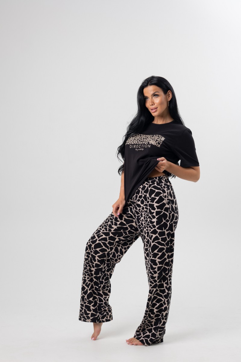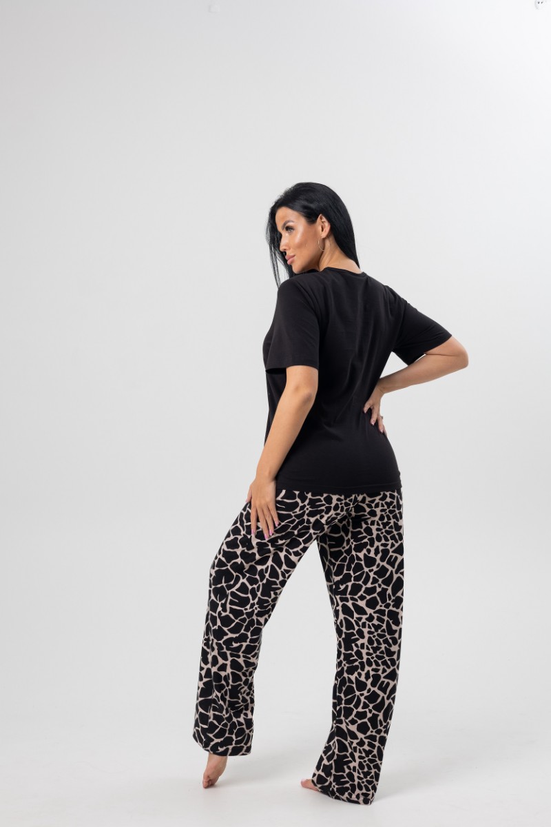 Представляем Вашему вниманию домашний костюм с брюками — это идеальный выбор для тех, кто хочет выглядеть стильно и при этом чувствовать себя комфортно. Комплект состоит из футболки и свободных брюк. Изделие имеет натуральный состав из хлопка. Ткань дышащая, мягкая и приятная к телу. Костюм с брюками идеально подходит для использования в дачных условиях или для дома. Наш женский домашний комплект - это идеальный выбор для женщин, идеальная пижама для сна и отдыха. Стильная и комфортная домашняя женская одежда - практичный и оригинальный подарок.