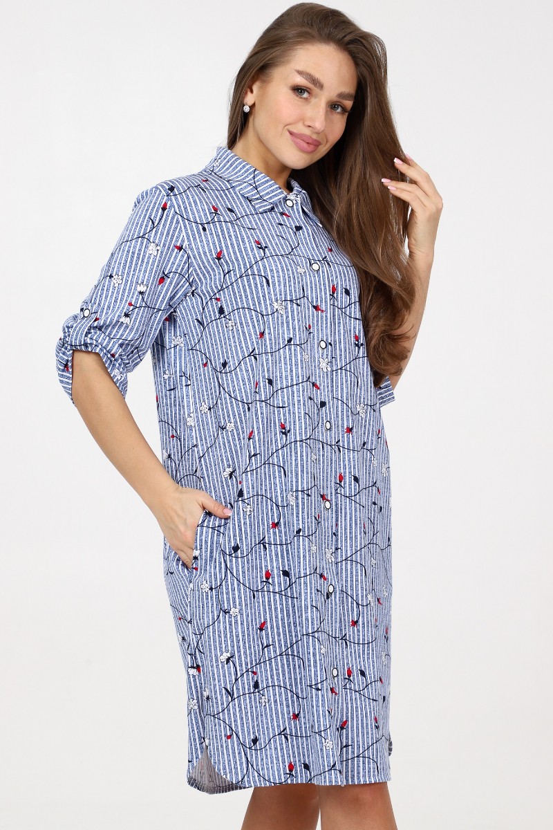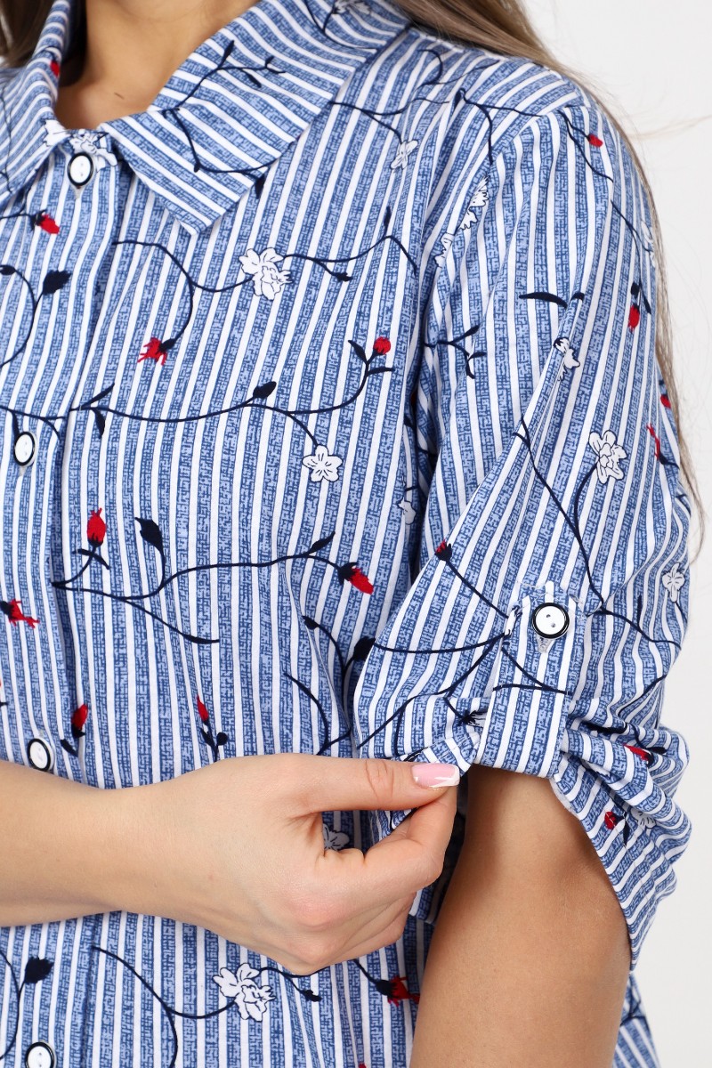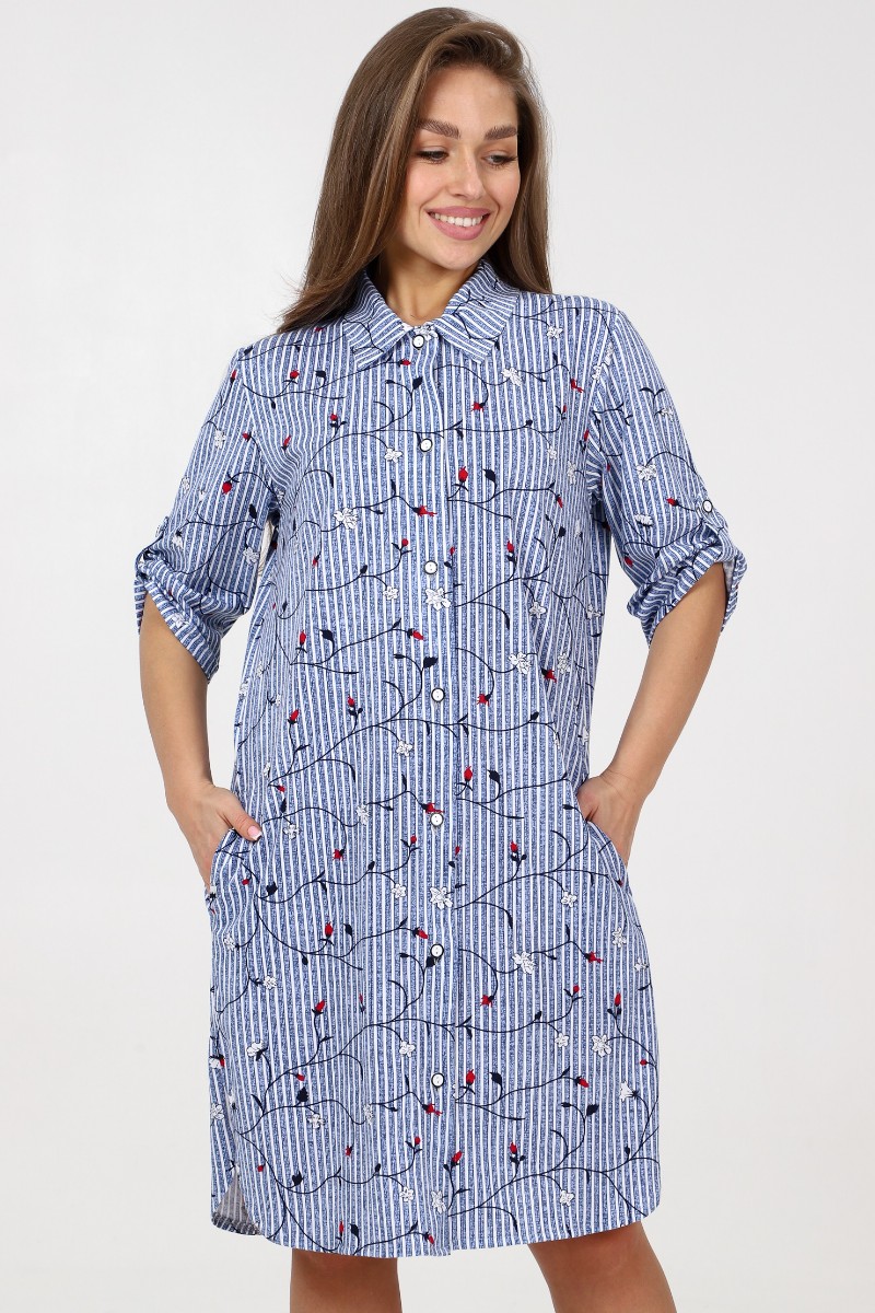 Представляем Вашему вниманию халат-тунику на пуговицах свободного рубашечного кроя. Втачной рукав с патой. Он отлично подойдет в качестве красивой домашней одежды. Халат-рубашка является самой стильной моделью, обеспечивает удобство во время носки, не сковывает движений. Халат представлен в размерах 44-52. Халат рубашка дополнен карманами в боковом шве, рукавом три четверти с патой Практичный и удобный халат средней длинны из трикотажа. Модель прямого силуэта на пуговицах. Благодаря свободному крою халат идеально будет сидеть на любой фигуре. Подарите себе легкость и удобство на каждый день! Рекомендована машинная стирка при 30-40 градусах. За счет свободного кроя подойдет для беременных женщин, подходит под категорию будущие мамы. Материал кулирка. Ощутите домашний уют и комфорт - выбирайте халат-рубашка женский домашний из мягкой хлопковой ткани.