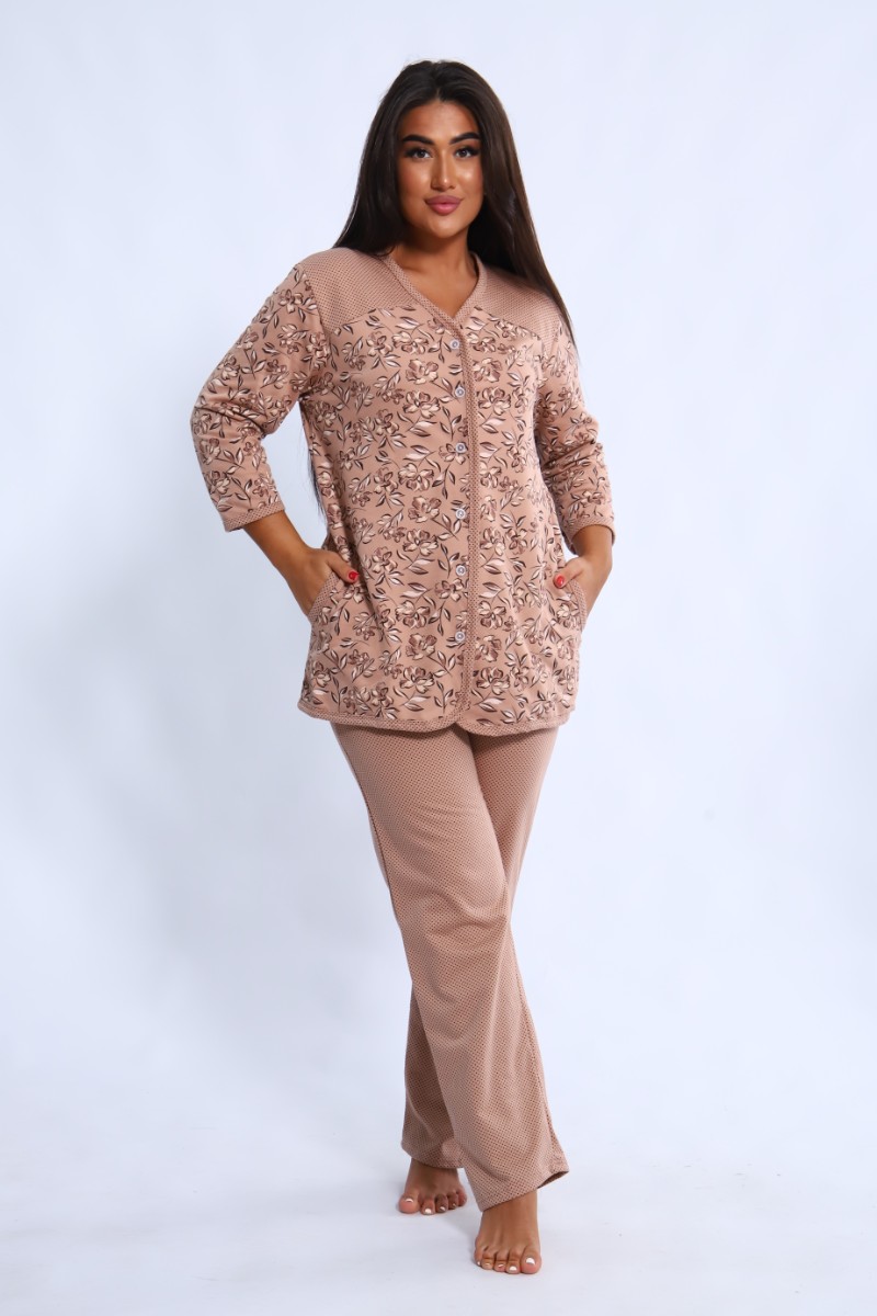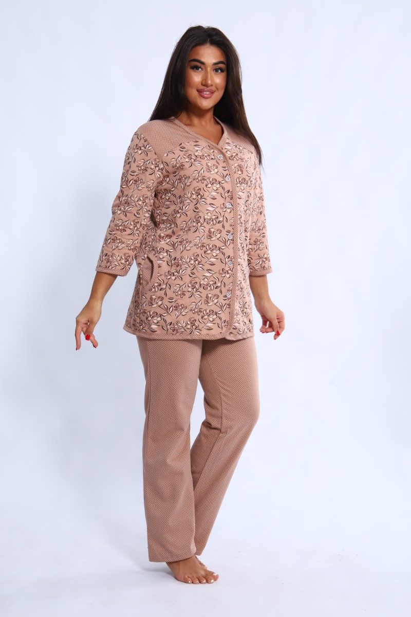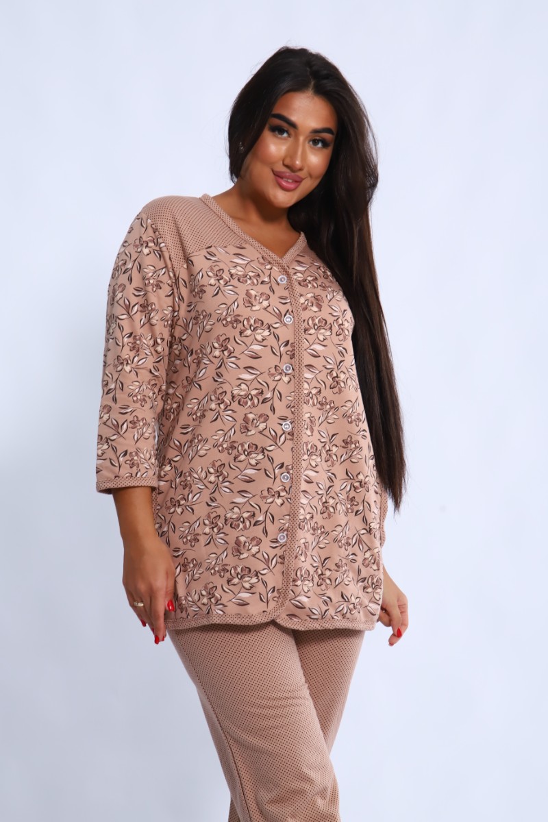 Пижама женская М337 "Уют" футер (последний размер) цветы какао 56,58