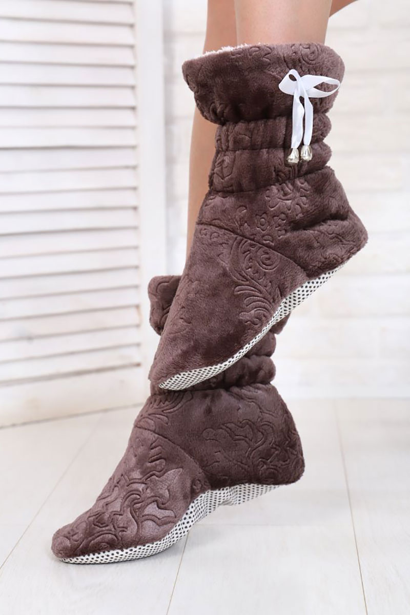 Сапожки домашние с бомбошками С-152 велсофт (последний размер) кофе 41-42