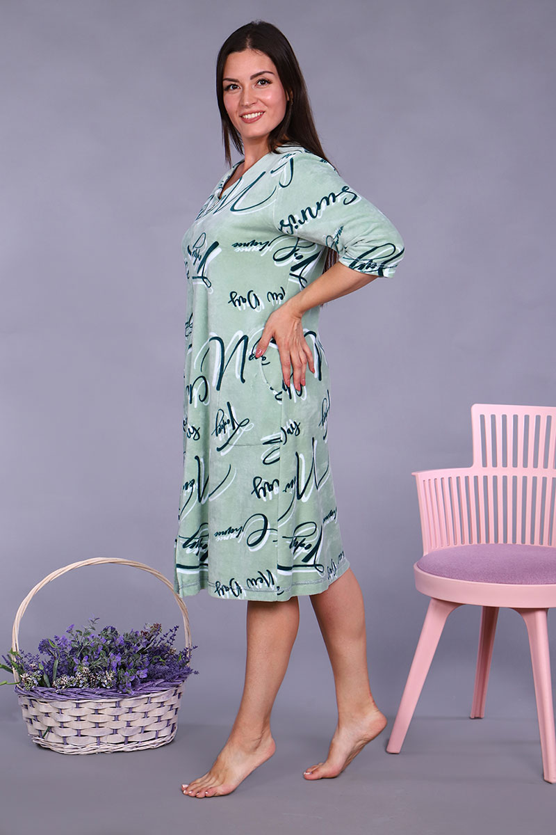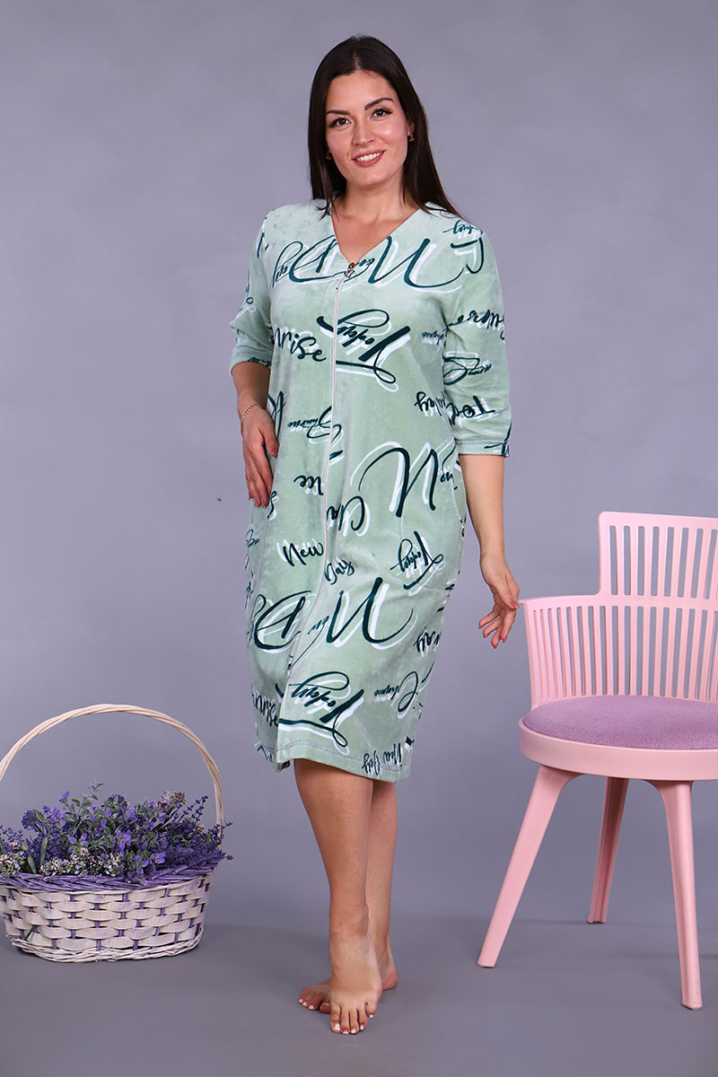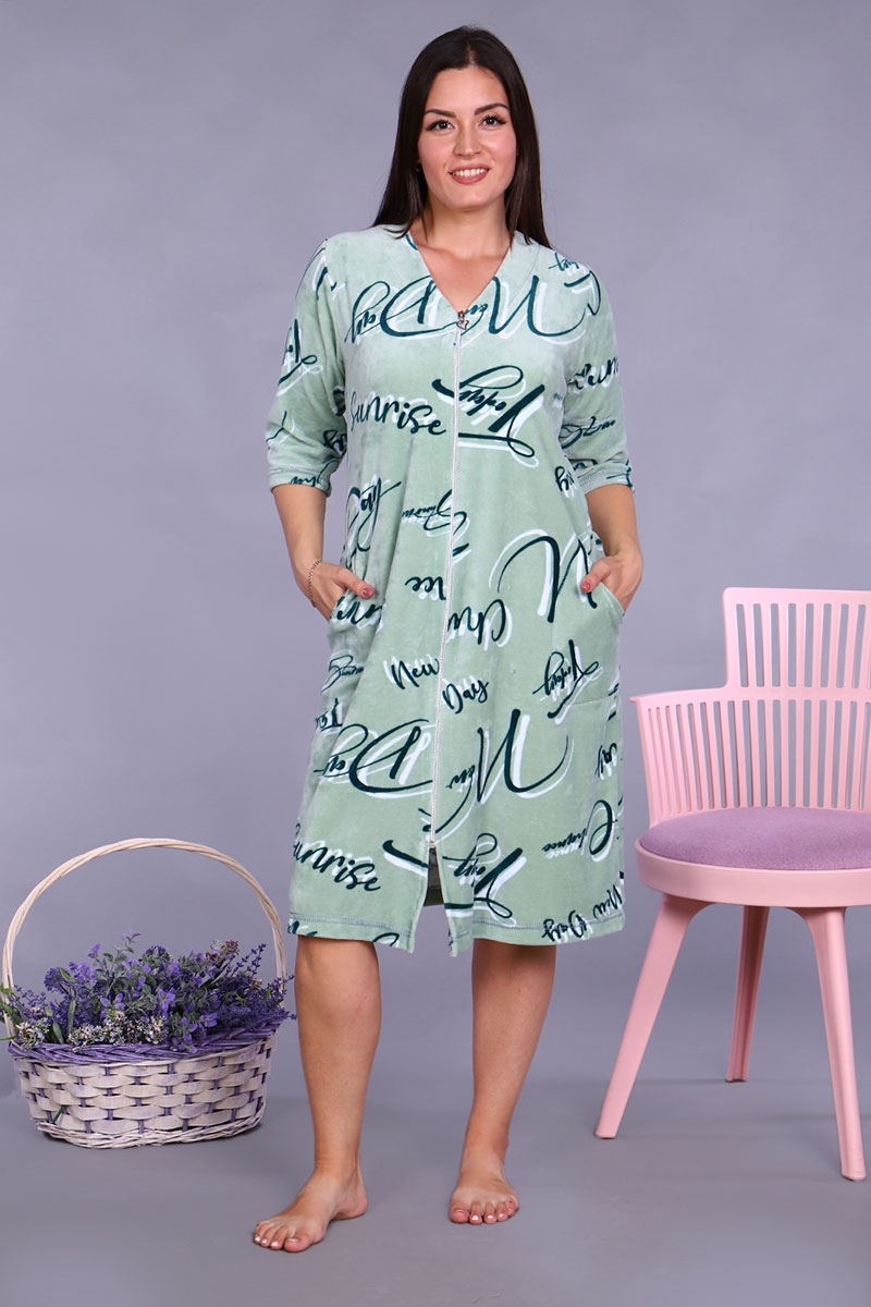 Халат женский №6754 велюр (последний размер) светло-фисташковый 54,62,66