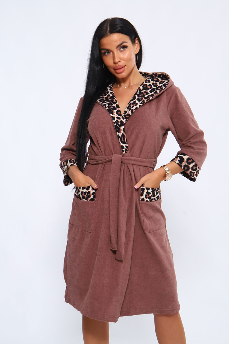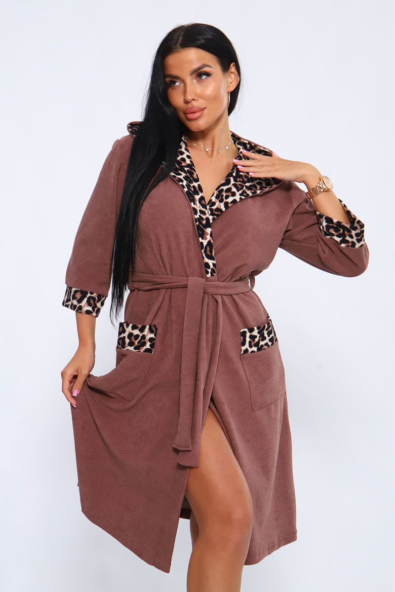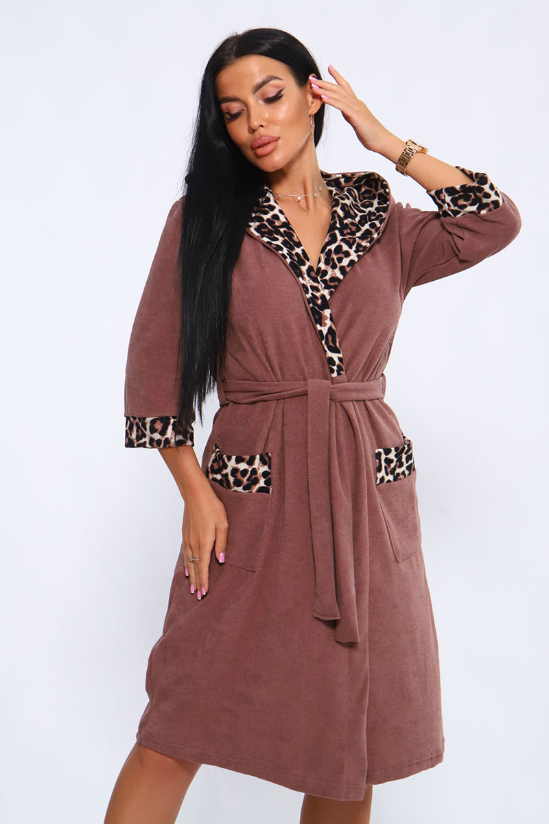 Халат женский №208 махра (последний размер) молочный шоколад 56