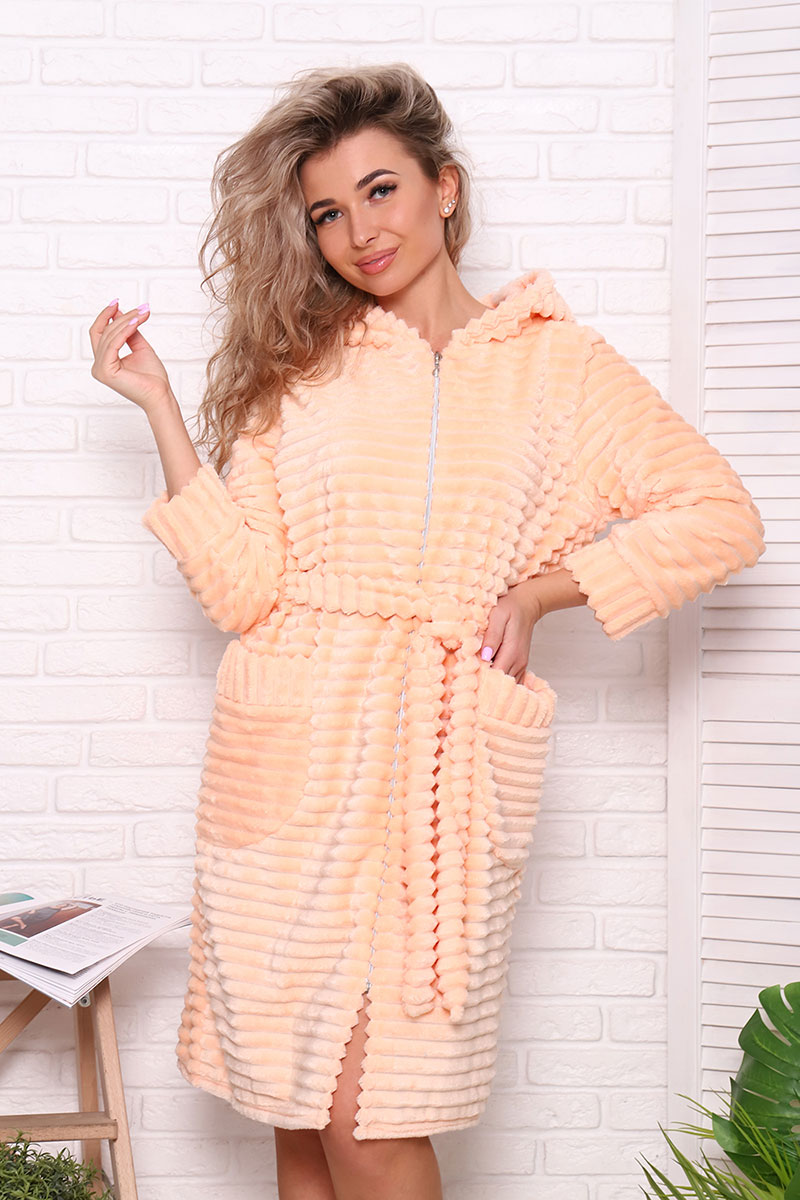 Халат женский №5718 велсофт (последний размер) персиковый 58