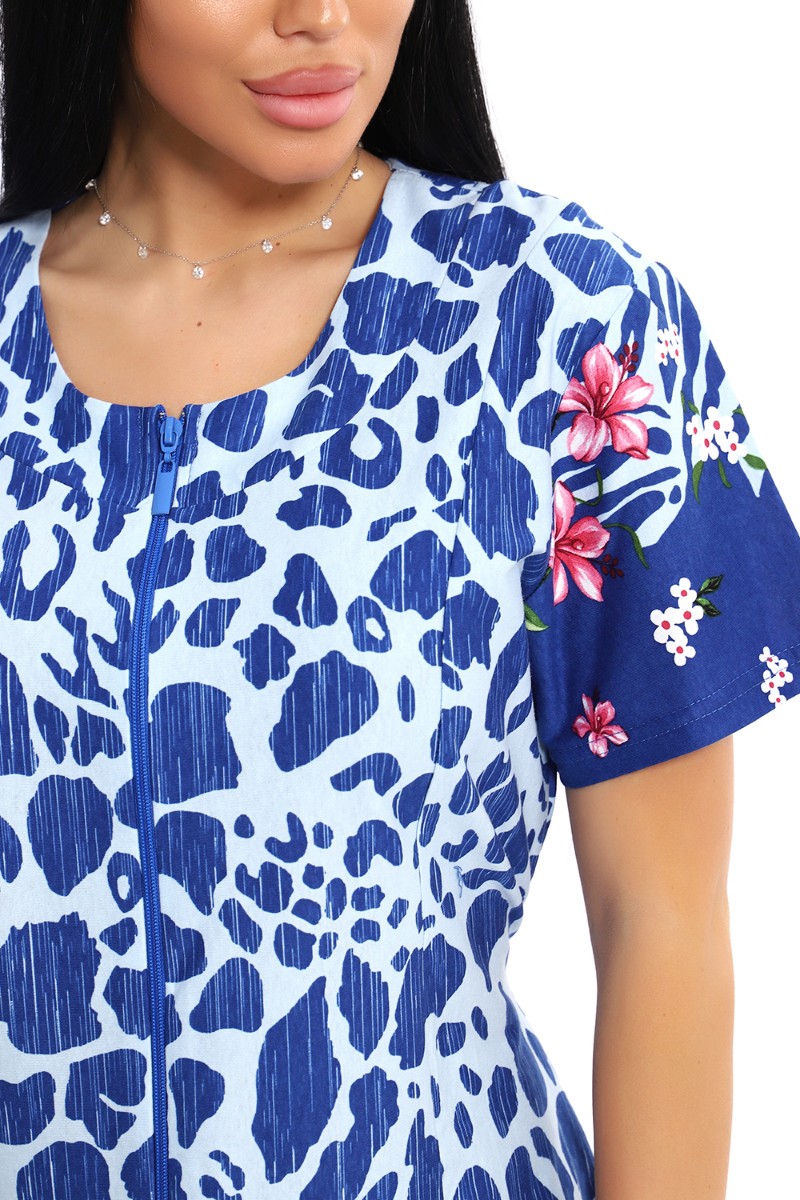 Представляем Вашему вниманию уютный и удобный домашний женский халат из легкой хлопковой ткани создан для настоящих ценительниц качества и стиля! Это именно та домашняя одежда, в которой комфортно готовить еду, заниматься уборкой, стиркой и прочими бытовыми делами. Дизайн ткани представляет собой комбинацию принта с ярким цветочным рисунком, переходящим в модную леопардовую расцветку. Халат застегивается на молнию, поясок завязывается сзади. Короткий рукав позволяет носить халат в жаркое время года дома и на даче.