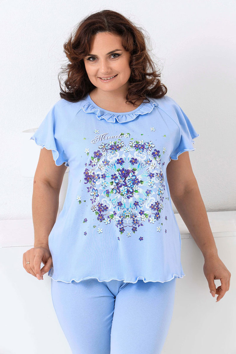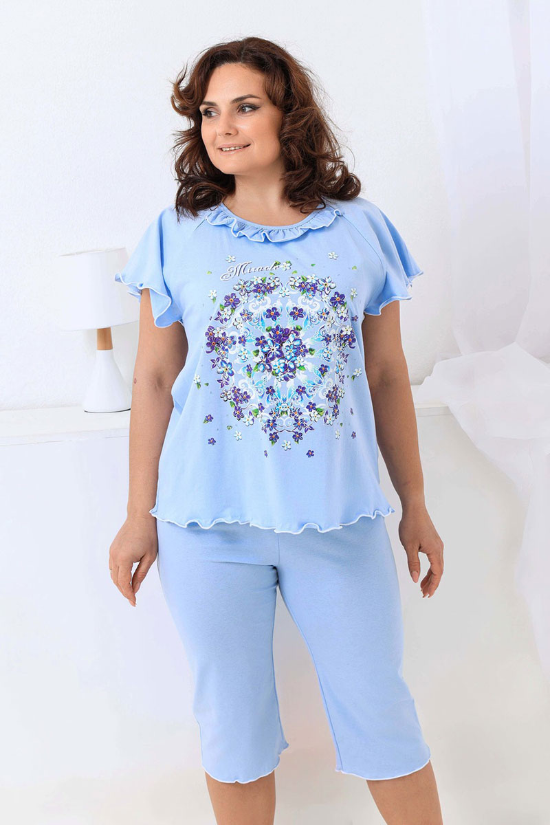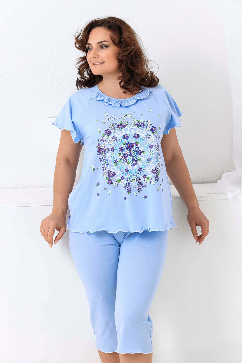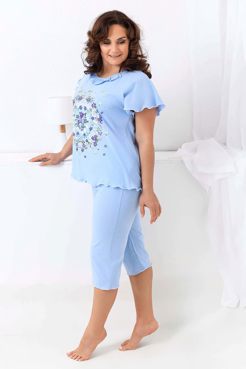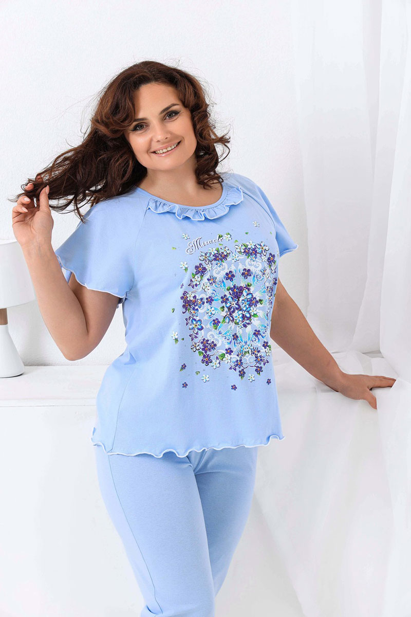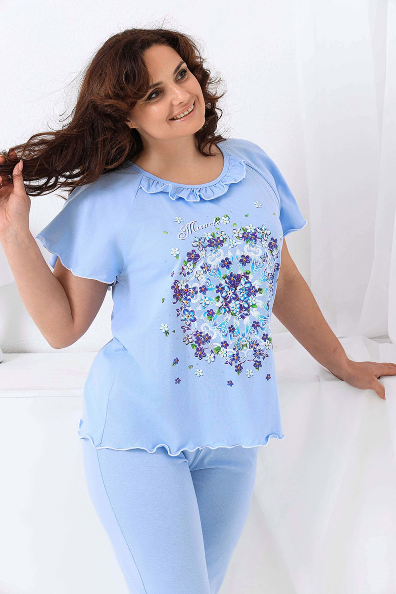 Пижама женская №21569 кулирка (последний размер) голубой 50