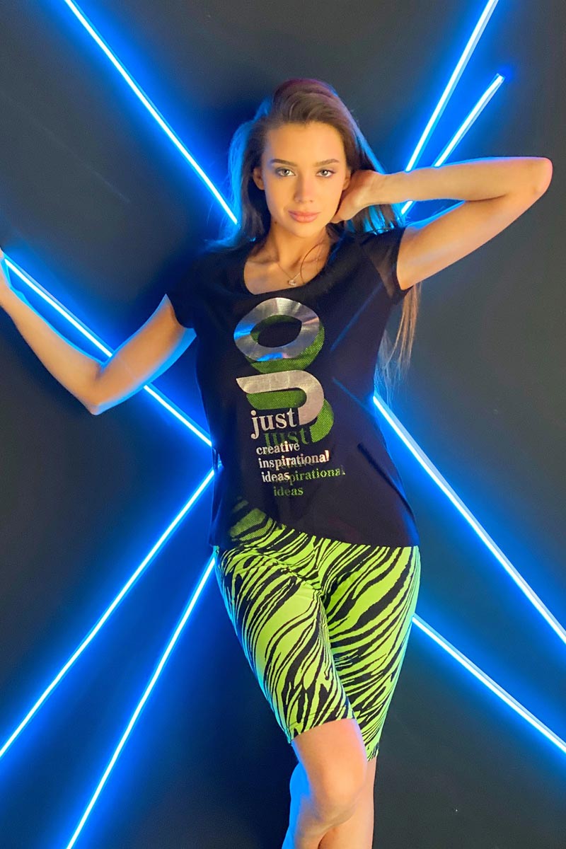 Футболка женская №8077 вискоза (последний размер) черный+салатовый 50