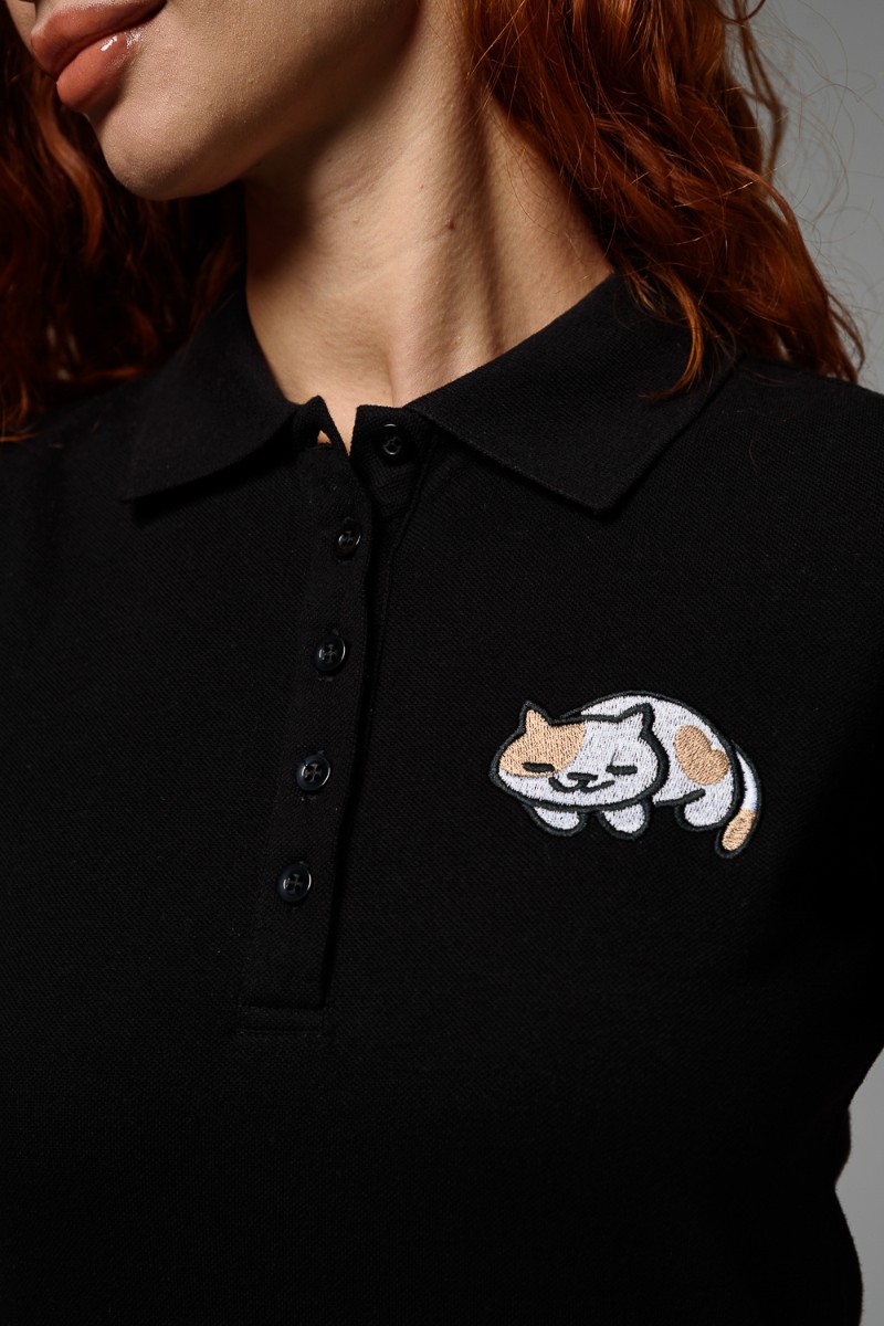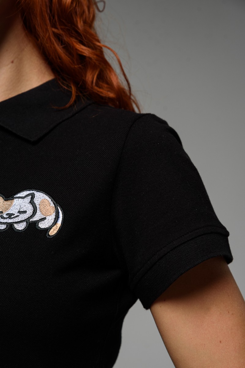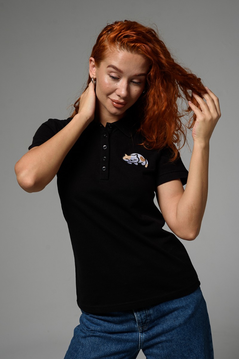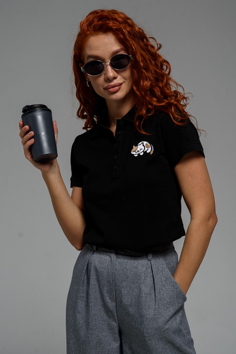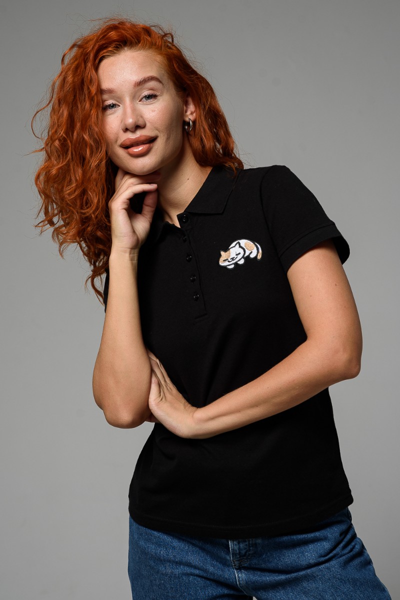 Футболка женская №8524 пике (последний размер) черный кот 52