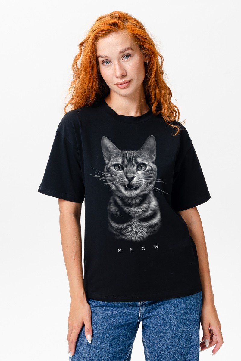 Футболка женская №8506 кулирка с лайкрой пенье (последний размер) кот-черный 52
