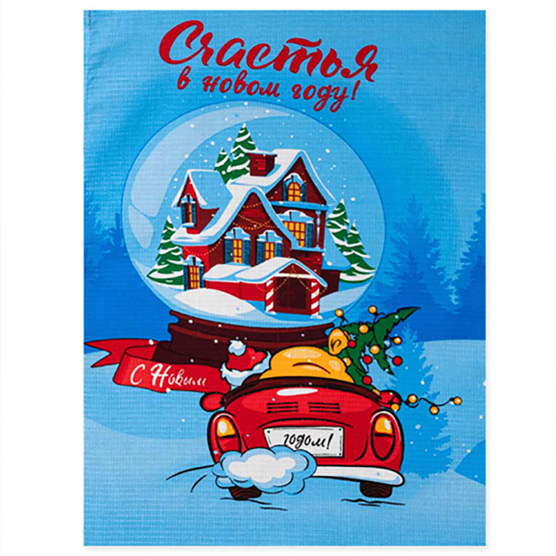 Полотенце кухонное "NewYear" вафельное полотно "Зимние забавы" вид синий (последний размер) 45х60