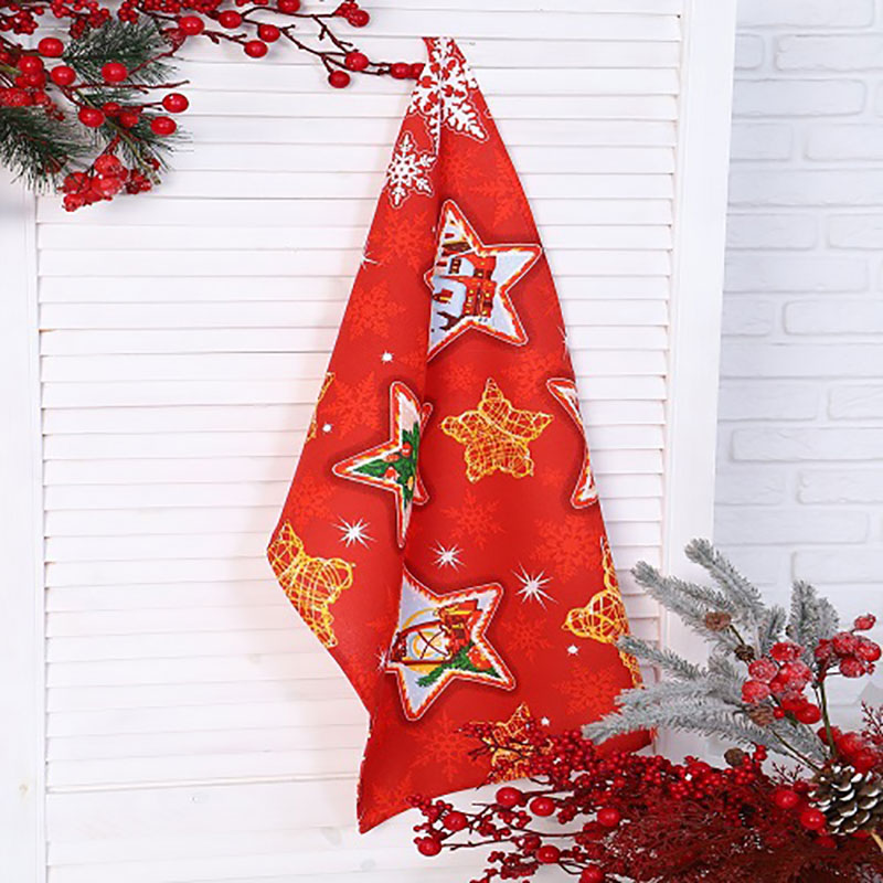 Полотенце кухонное "NewYear" рогожка "Новогодние звезды" (последний размер) 37х70