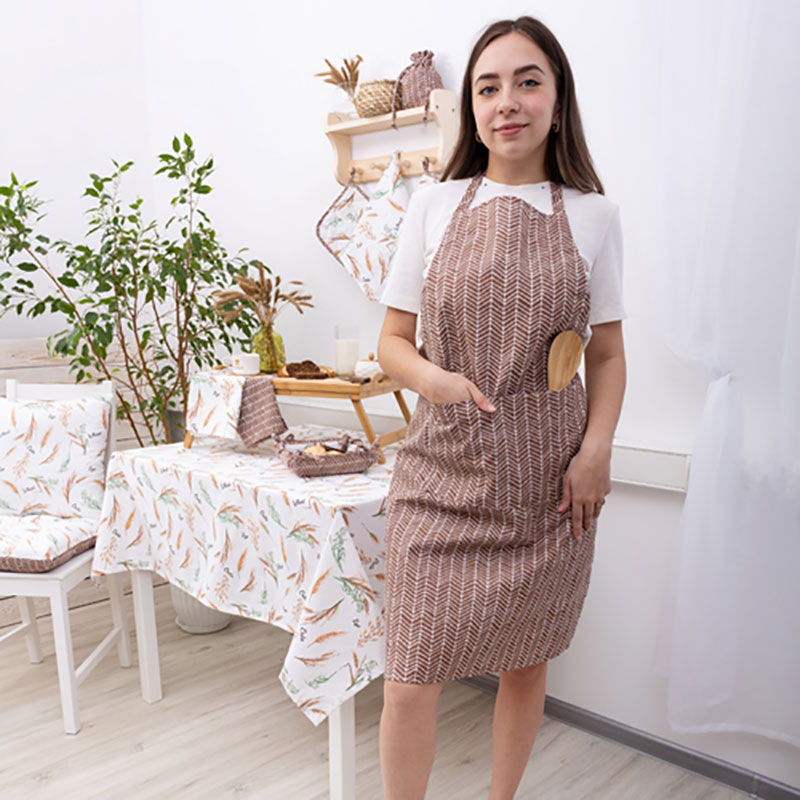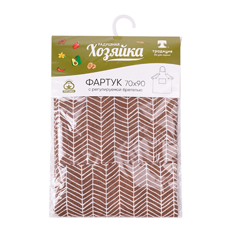 Фартук кухонный "Радушная хозяйка" с карманом и регулируемой бретелью рогожка "Ёлочка" коричневый (последний размер) 70х90