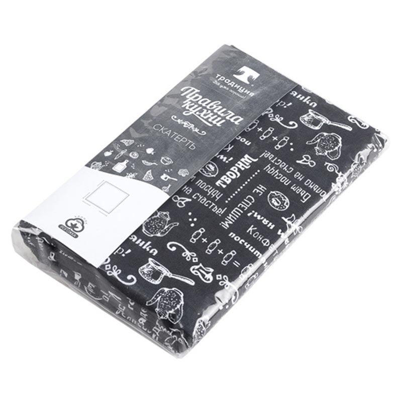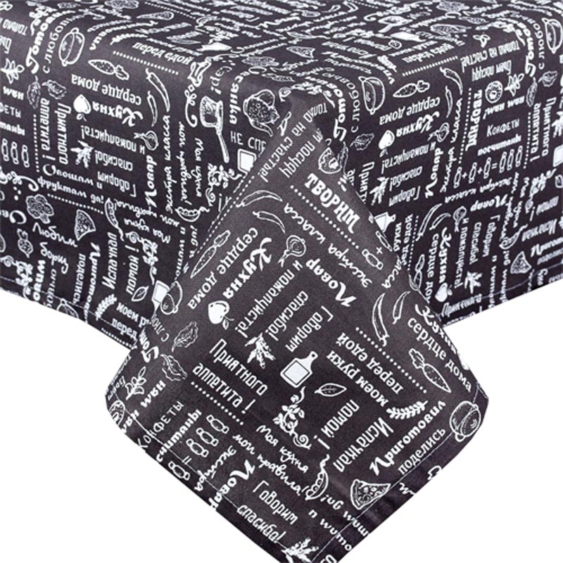 Скатерть "Правила кухни" рогожка "Горький шоколад" (последний размер) 145х180