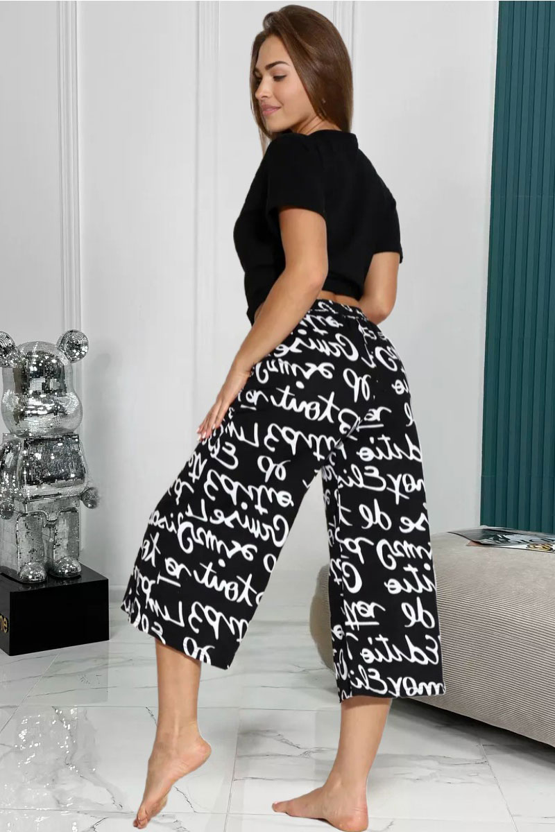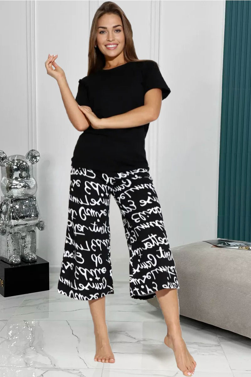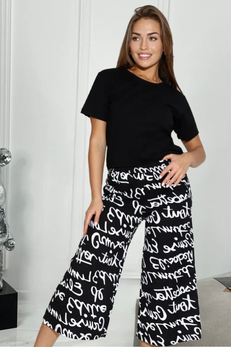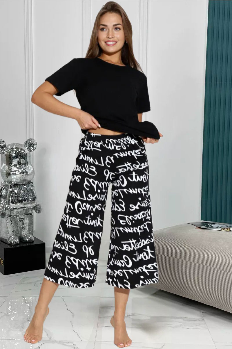 Представляем Вашему вниманию модный стильный костюм - идеальное решение для тех, кто ищет легкую и красивую одежду на каждый день, для дома, спорта и отдыха. Футболка и брюки-кюлоты выполнены из 100% хлопка. Костюм представлен в стильной расцветке, которая дарит хорошее настроение.