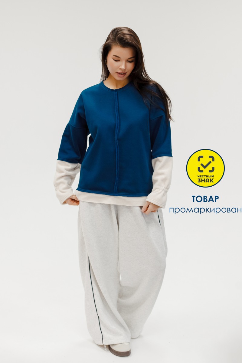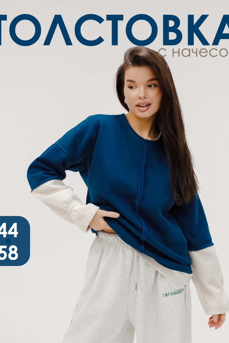 Представляем Вашему вниманию женскую толстовку оверсайз, выполненную из приятной на теле и практичной ткани футер с мехом. Состав 80% хлопок и 20% полиэстер обеспечивает комфорт, хорошую воздухопроницаемость и долгий срок службы изделия. Размер с 44 по 58 благодаря свободному крою идеально подходит для разных типов фигуры и легко сидит как в расслабленном оверсайз, так и в более аккуратном силуэте. Модель толстовки сконструирована по авторскому дизайну из двух расцветок. Основной цвет дополняет другая расцветка на рукавах, по низу изделия и чуть на воротнике. Первый элемент это воротник с необработанным краем, который добавляет современной графики образу, а рукав на резинке удерживает тепло и придаёт аккуратную посадку. Толстовка тёплая и приятная к телу, она выполнена с начесом для дополнительного уюта и комфорта в холодное время года. Начес не линяет и не образует каташки, что сохраняет презентабельный вид даже после многократных стирок и активной носки. Однотонная расцветка делает вещь универсальной базовой частью гардероба и даёт свободу для стильных комплектов. Модель выдержана в стиле y2k, поэтому отлично смотрится в сочетании с ретро-элементами и современными акцентами. Свитшот прекрасно вписывается в спортивный стиль и одновременно служит надёжной базовой вещью для повседневной носки. Её легко комбинировать с джинсами или леггинсами, а также с юбками и шортами для более смелых образов. Эта толстовка — практичное решение для тех, кто ценит тепло, комфорт и актуальный городской стиль в одном изделии.