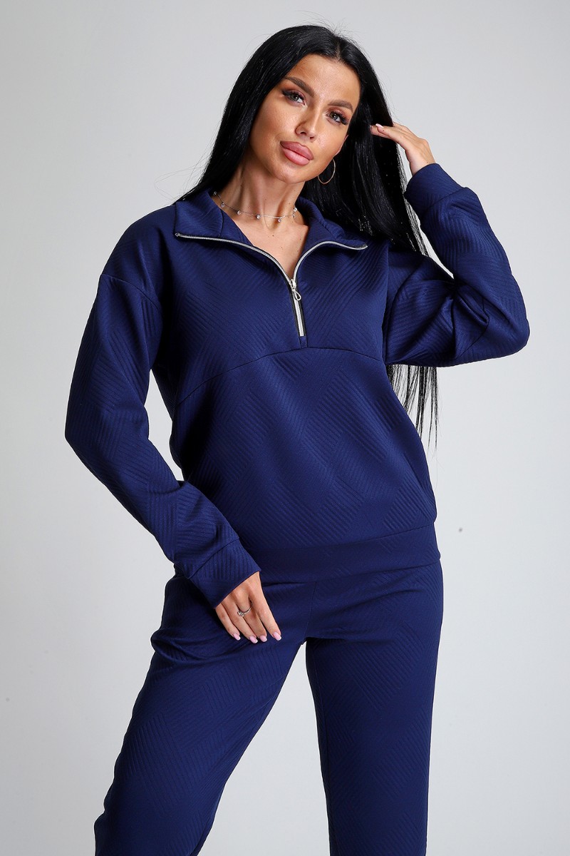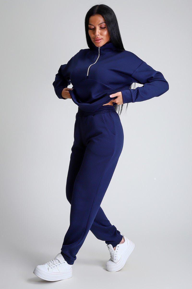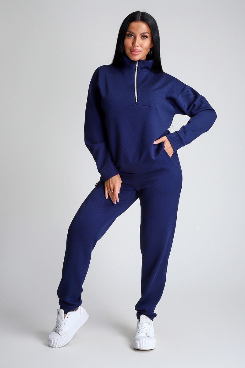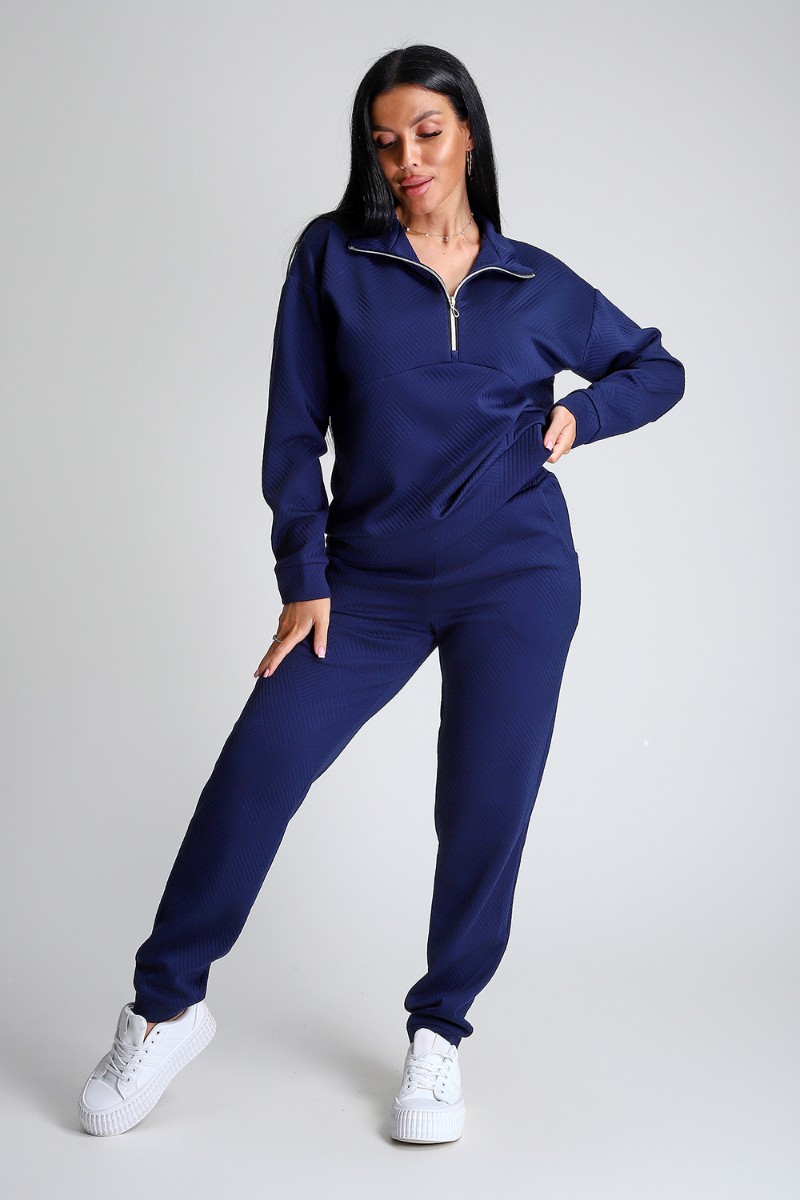 Представляем Вашему вниманию спортивный женский костюм двойку - элегантное и практичное решение для тех, кто ценит удобство, свободу движений и современный модный стиль. Костюм для активных девушек, взрослых женщин и подростков состоит из толстовки и брюк джоггеров. Выполнен костюм из приятного к телу эластичного трикотажа с геометрически рельефной структурой. Модная толстовка свободного кроя, воротник-стойка застегивается на молнию, спущенный рукав обеспечивает свободу движения. Брюки прямого кроя с боковыми карманами, удобный пояс на резинке выполнен на спецмашине, по низу брюк притачные манжеты. Повседневный трендовый костюм подходит для любой фигуры, подчеркивая ваши достоинства, будет идеален на отдыхе, прогулке и на спортивных тренировках.