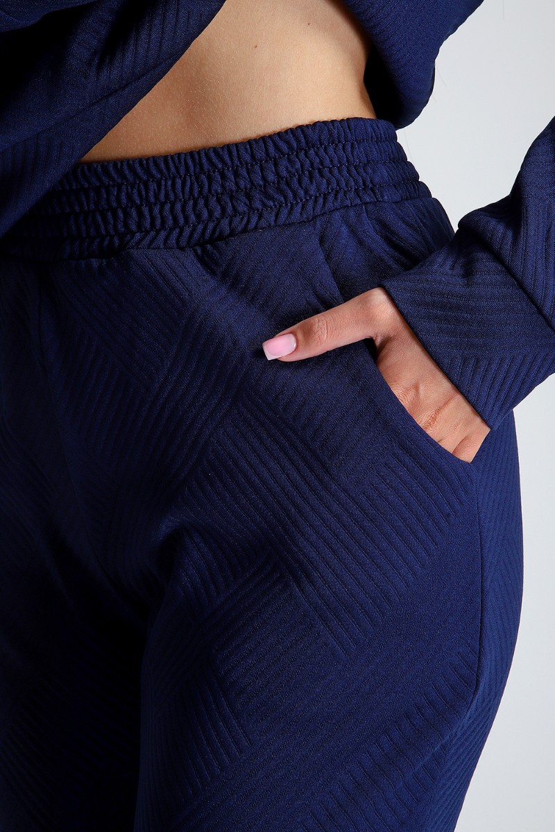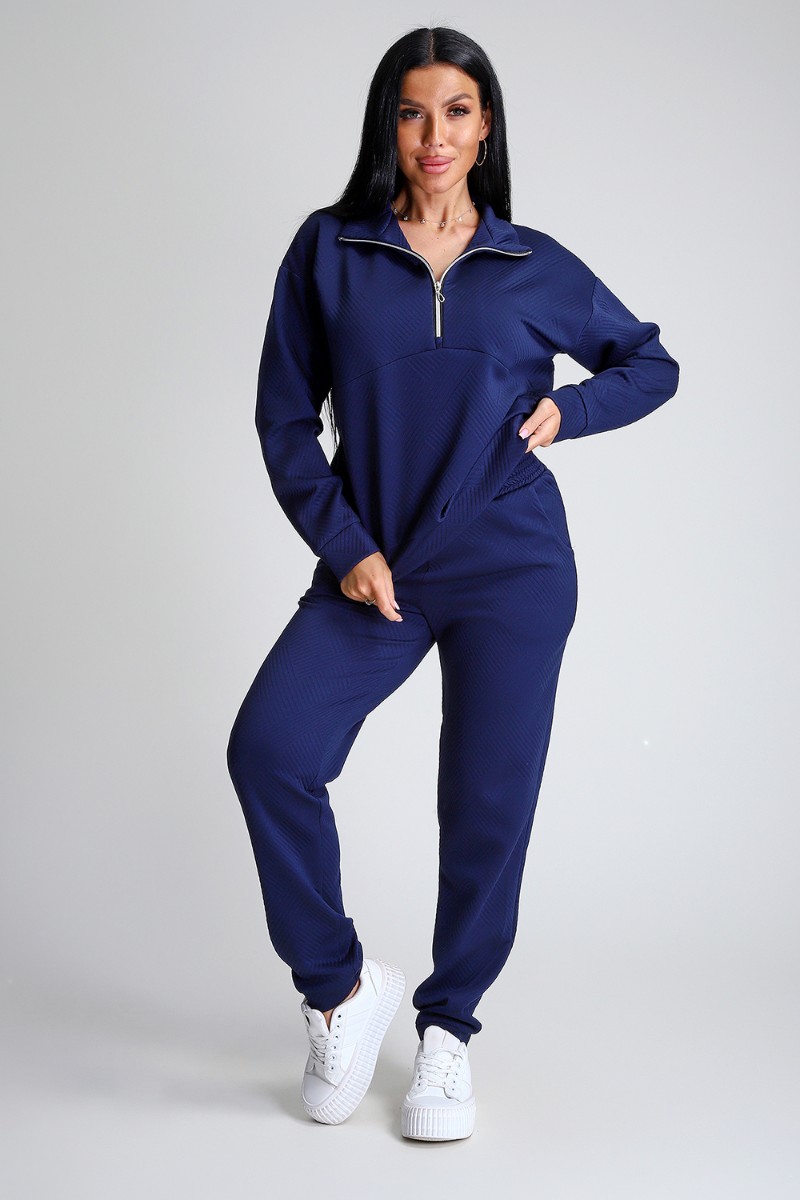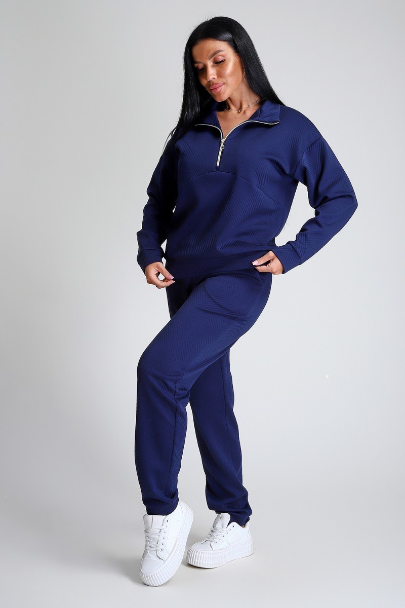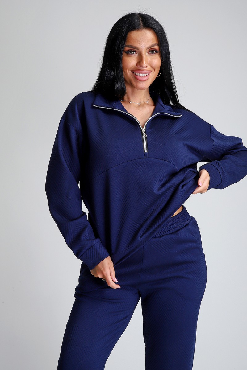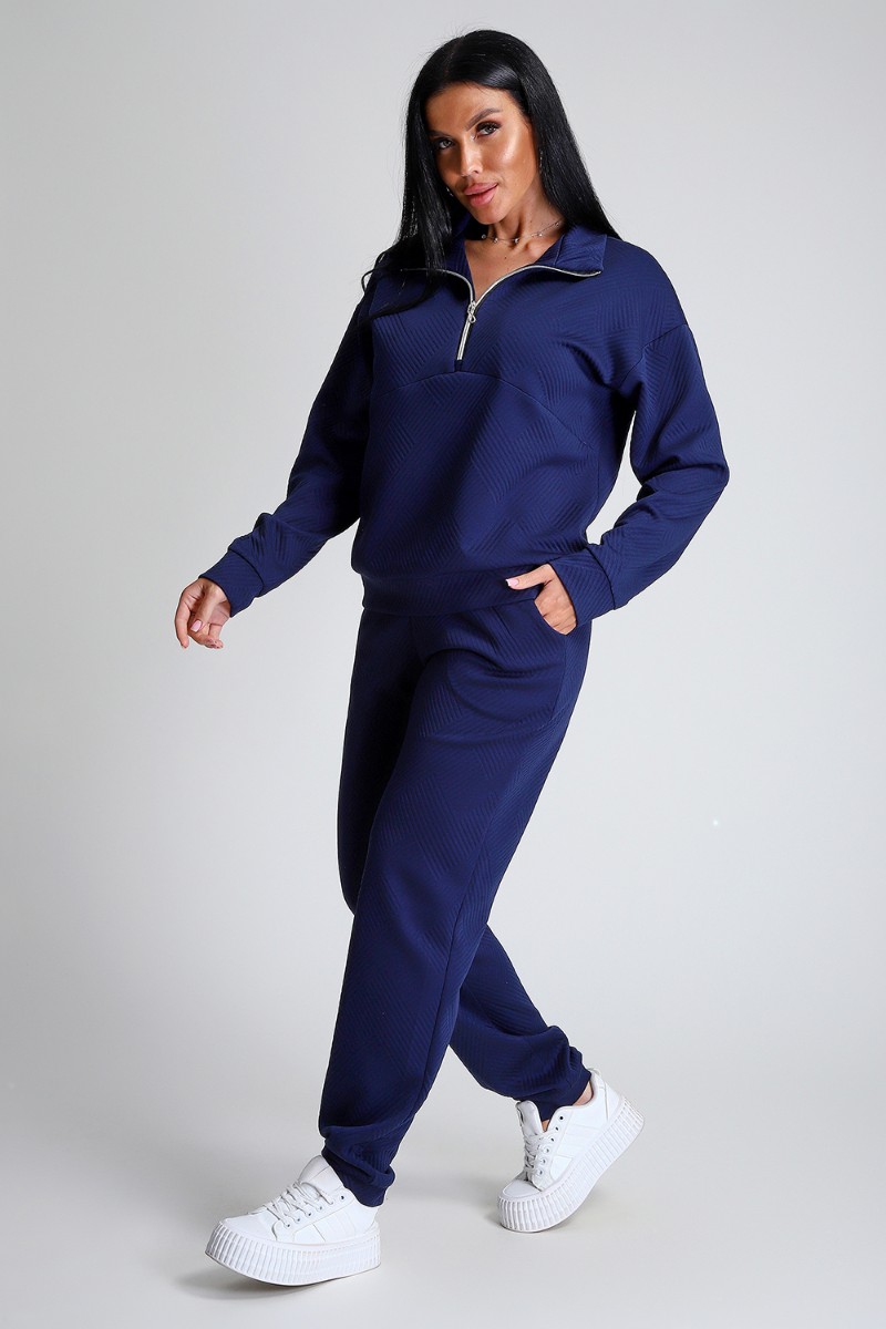 Представляем Вашему вниманию спортивный женский костюм двойку - элегантное и практичное решение для тех, кто ценит удобство, свободу движений и современный модный стиль. Костюм для активных девушек, взрослых женщин и подростков состоит из толстовки и брюк джоггеров. Выполнен костюм из приятного к телу эластичного трикотажа с геометрически рельефной структурой. Модная толстовка свободного кроя, воротник-стойка застегивается на молнию, спущенный рукав обеспечивает свободу движения. Брюки прямого кроя с боковыми карманами, удобный пояс на резинке выполнен на спецмашине, по низу брюк притачные манжеты. Повседневный трендовый костюм подходит для любой фигуры, подчеркивая ваши достоинства, будет идеален на отдыхе, прогулке и на спортивных тренировках.