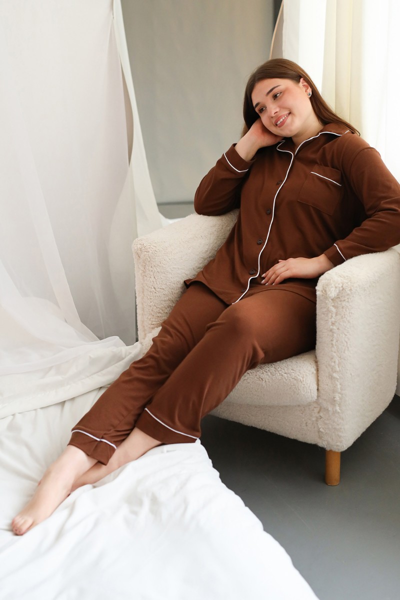 Пижама женская №057498 кулирка пенье (р-ры: 52-82) коричневый