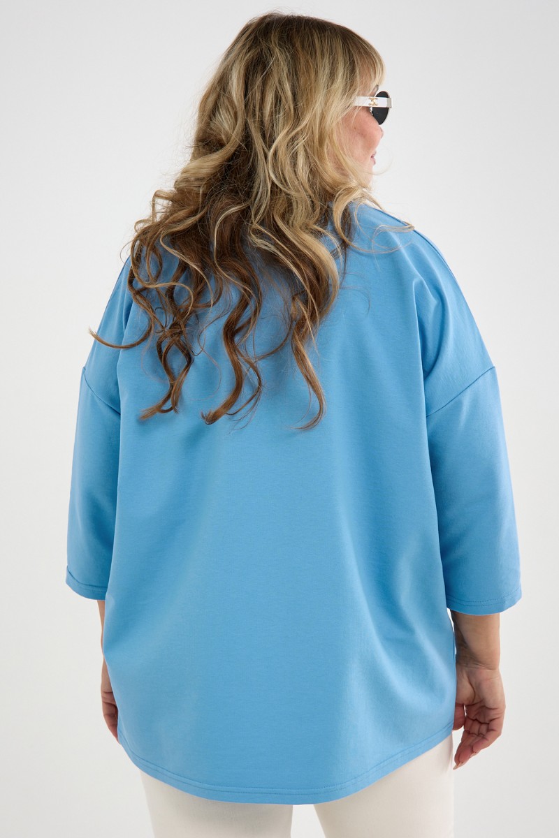 Представляем Вашему вниманию лонгслив - стильная и комфортная женская кофта, идеально подходящая для одежды стандартных и больших размеров. Лонг это отличный выбор для женщин, которые ценят стиль и комфорт. Изготовленный из футера двунитки, он обеспечивает хорошую воздухопроницаемость. Идеальная кофточка для девушек, подходящая для различных возрастных групп. Независимо от того, с каким образом вы решите носить, он будет отлично сочетаться с различной одеждой, создавая стильные и модные образы. Стильный лонгслив оверсайз с рукавом 3/4 это оптимальный вариант одежды второго слоя для осени и зимы, именно такая ткань позволит найти лучший баланс между тепло и не жарко. Отлично подходит для повседневной носки и вечерних мероприятий. Данная туника без горла может стать в вашем гардеробе отличной одеждой для дома, а также для офиса и под верхнюю одежду. Хотя в ней не жарко даже в тёплую погоду. Трикотажный свитшот в меру удлиненный. Лонгслив абсолютно не стесняет движений и подчеркивает вашу свободу. Классический лонгслив легко сочетать с другими предметами гардероба.