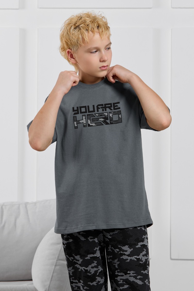 Костюм двойка детский "Экипаж-1" кулирка (р-ры: 140-170) графитовый