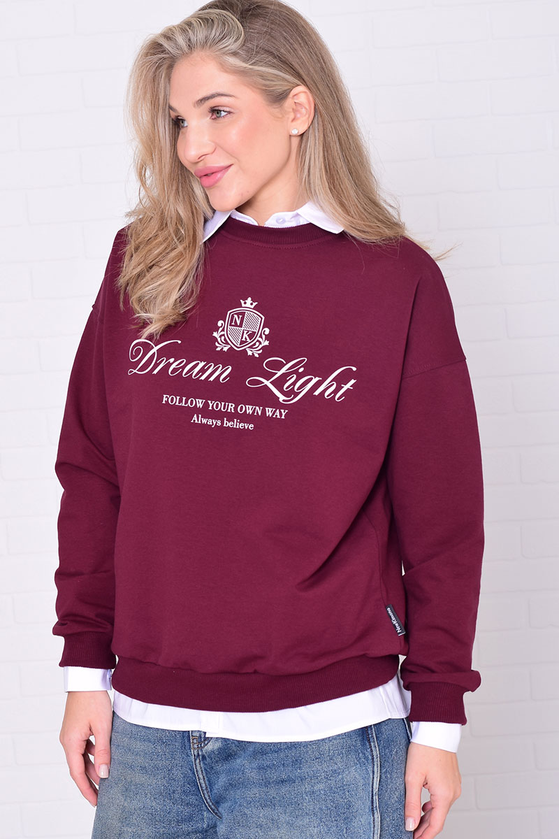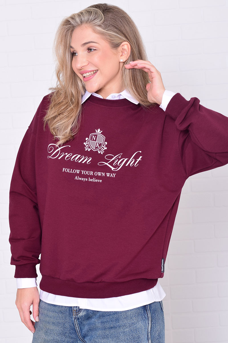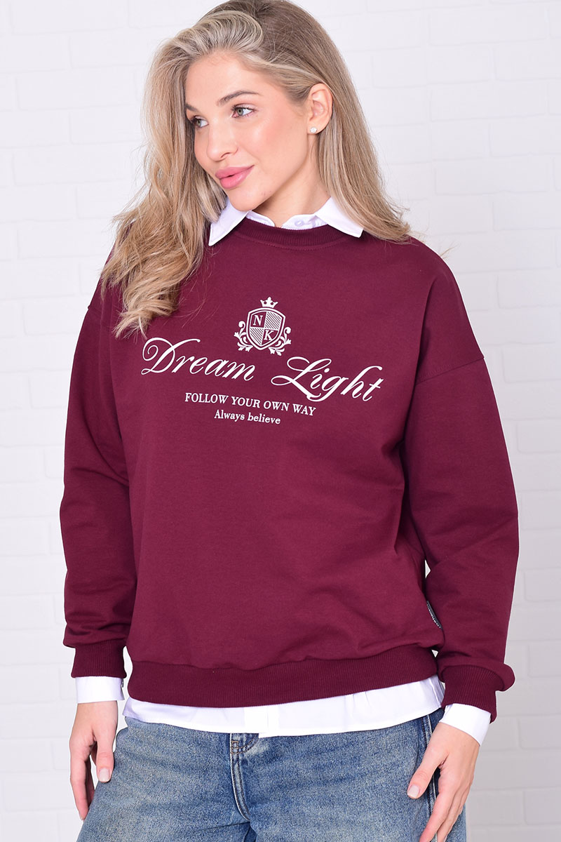 Джемпер женский 6221а футер 2-х нитка (р-ры: 42-56) бордо