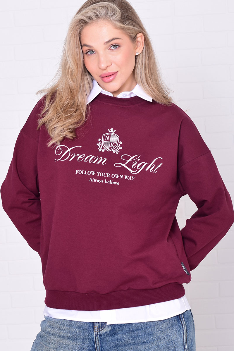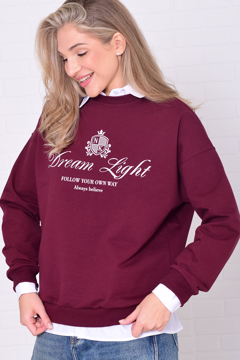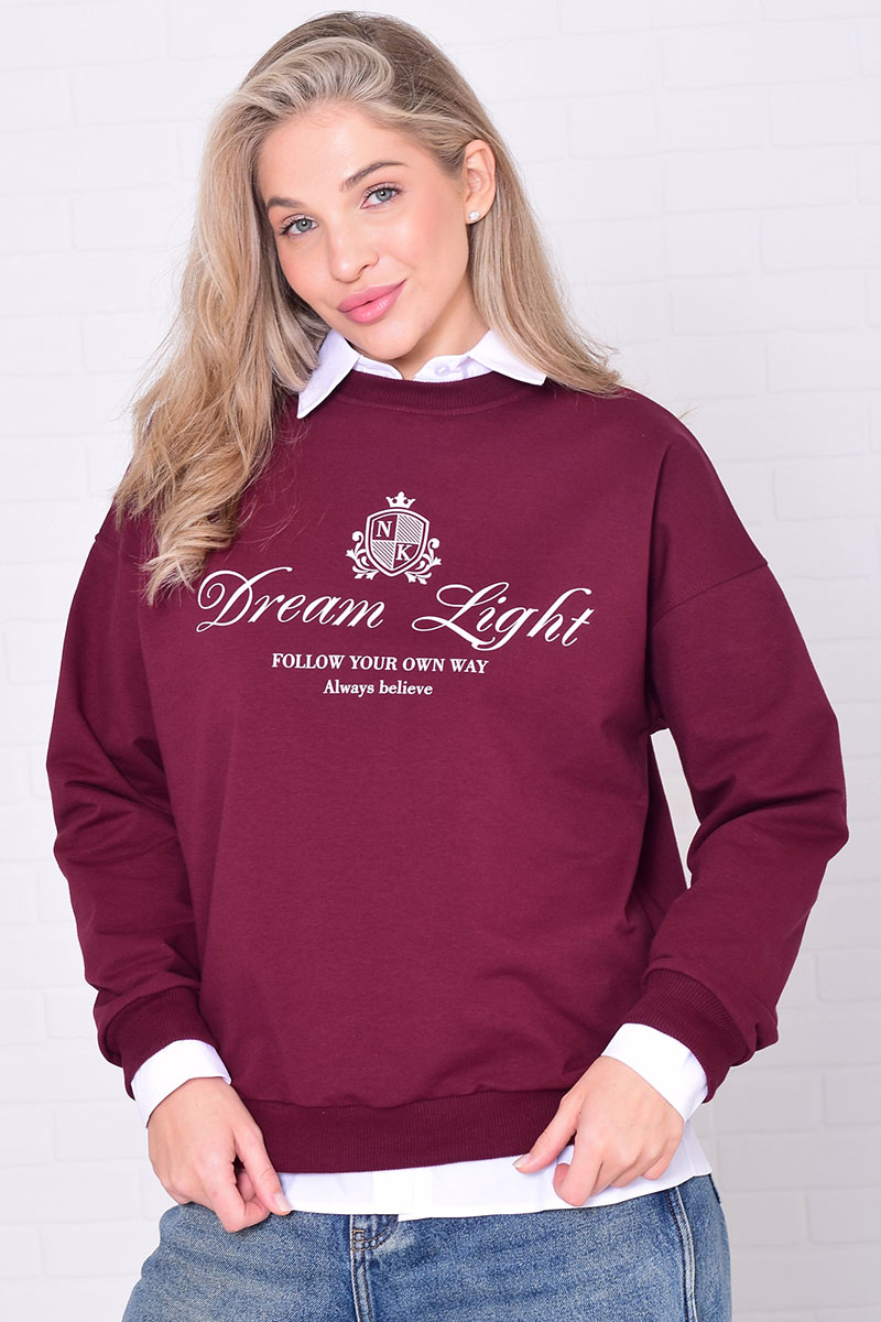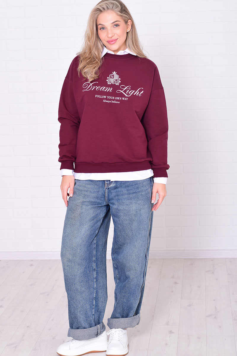 Джемпер женский 6221а футер 2-х нитка (р-ры: 42-56) бордо