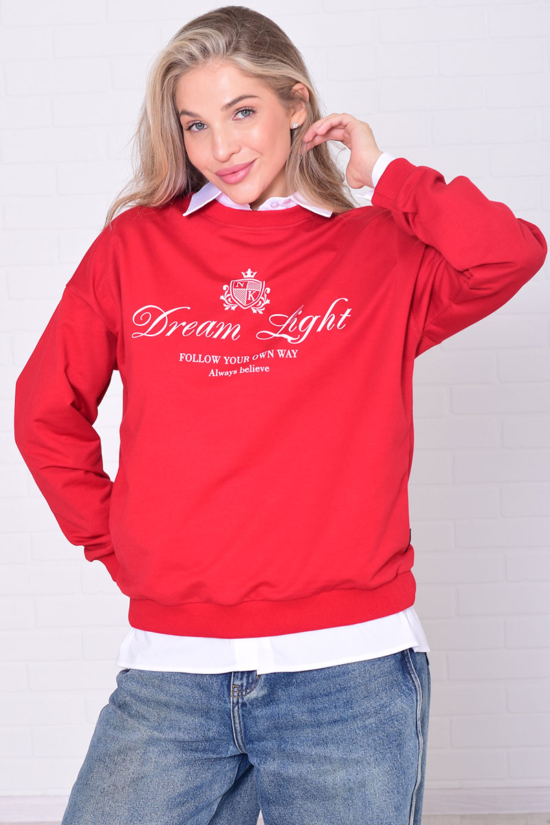 Джемпер женский 6221в футер 2-х нитка (р-ры: 42-56) красный