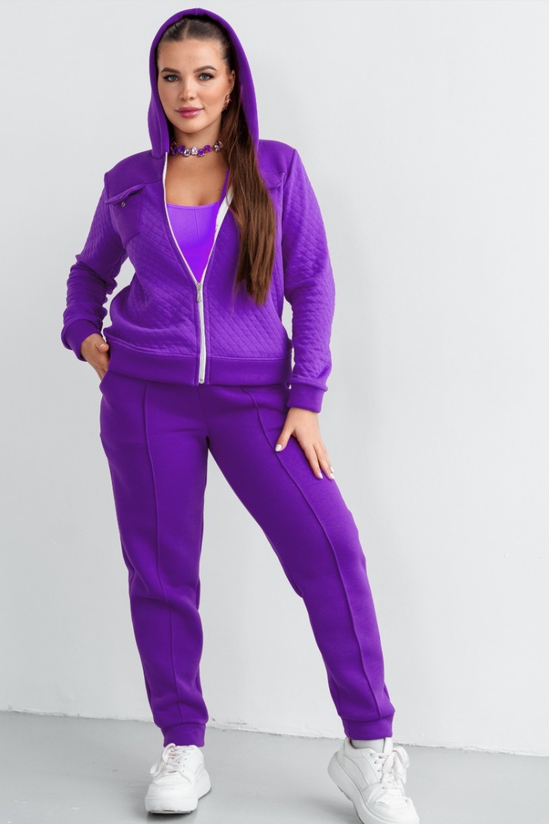 Костюм двойка женский КС-202КПТНЧ/ФИО капитоний с начёсом (р-ры: 48-58) фиолетовый