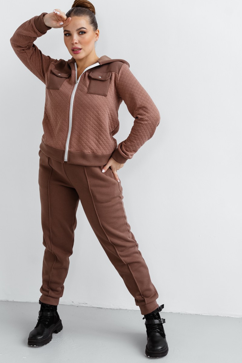 Костюм двойка женский КС-202КПТНЧ/КОФ капитоний с начёсом (р-ры: 48-58) кофе