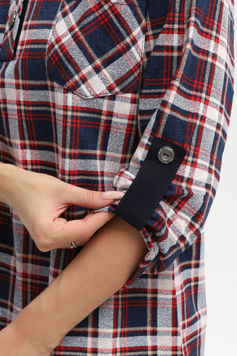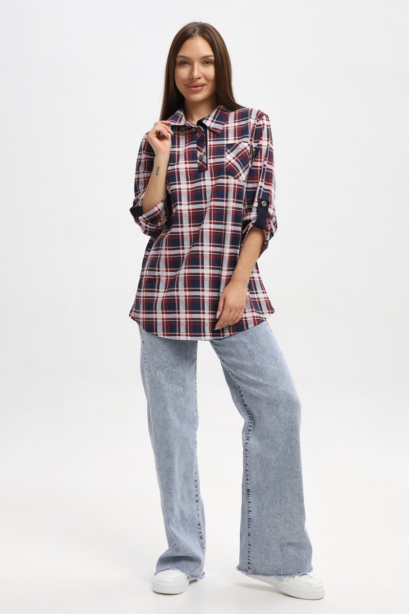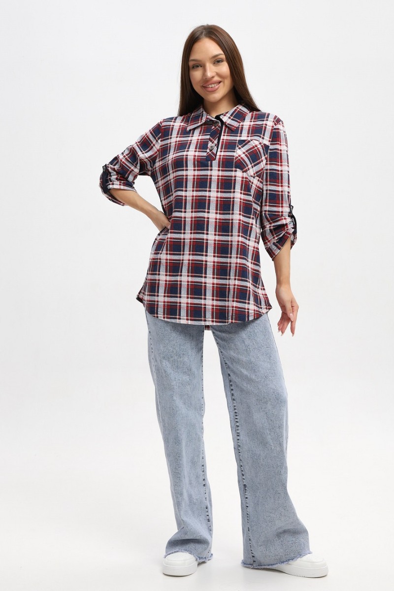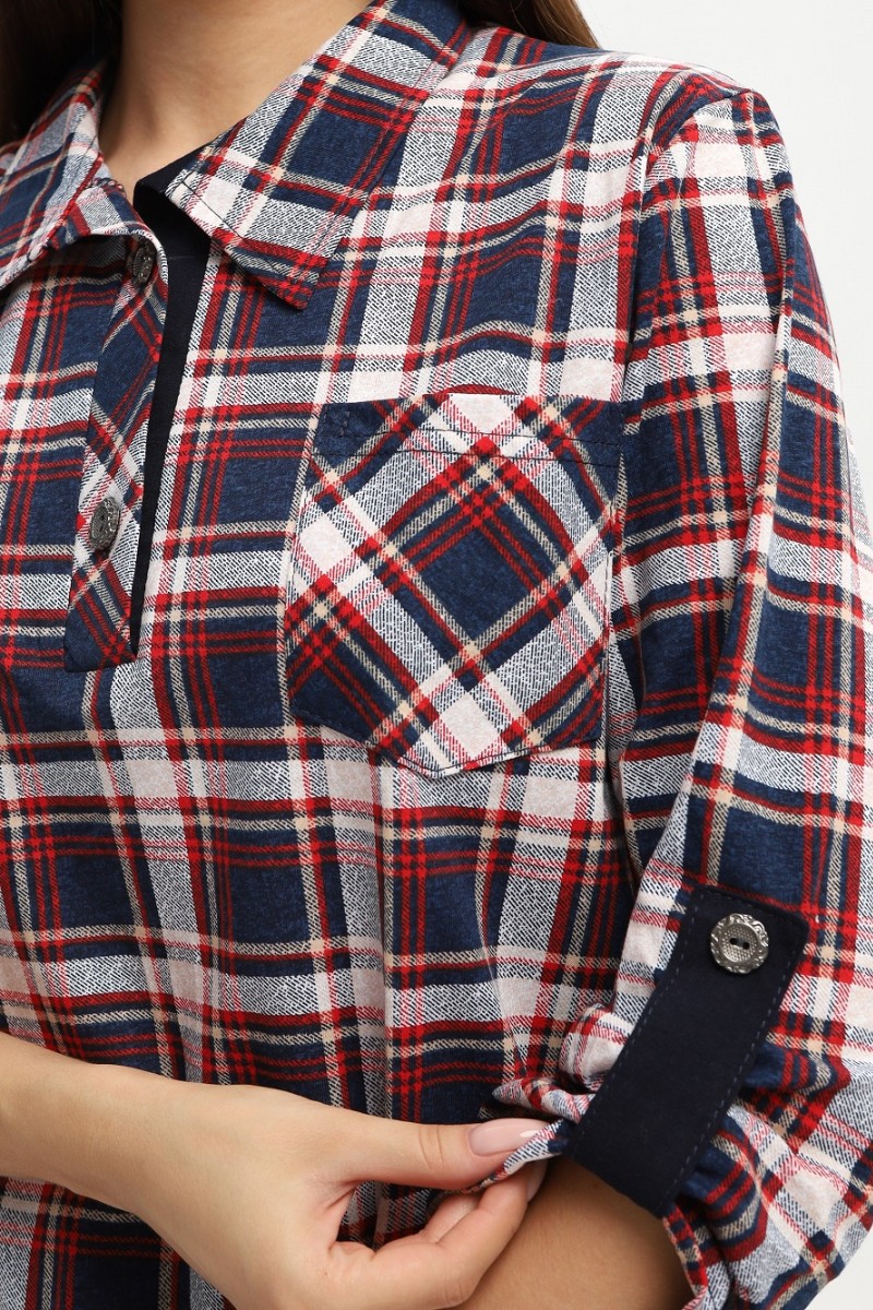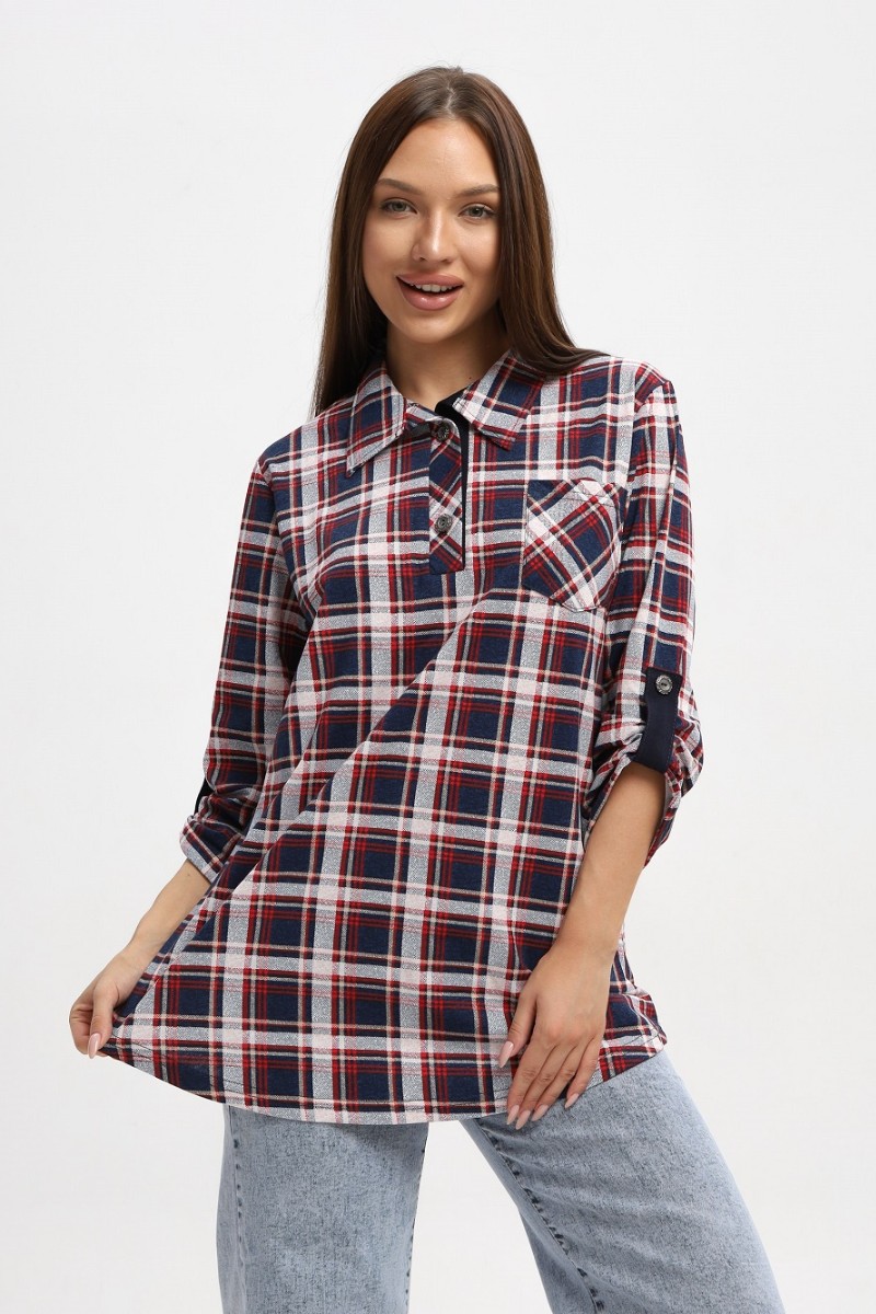 Представляем Вашему вниманию женскую тунику с воротом приталенного силуэта на пуговицах. Ткань кулирка набивная, рисунок полоска. На планке, ворот отложной. Рукав длинный с патой, которой можно сделать сборку. Короткий рукав не сковывает движения создавая образ женственным. Одна планка и пата на рукаве из отделочной ткани. На левой стороне карман. Низ закругленный, длинна ниже бедер, подходит для повседневной носки, для офиса. Удобный, яркий и практичный вариант одежды для работы, дачи, прогулок.
